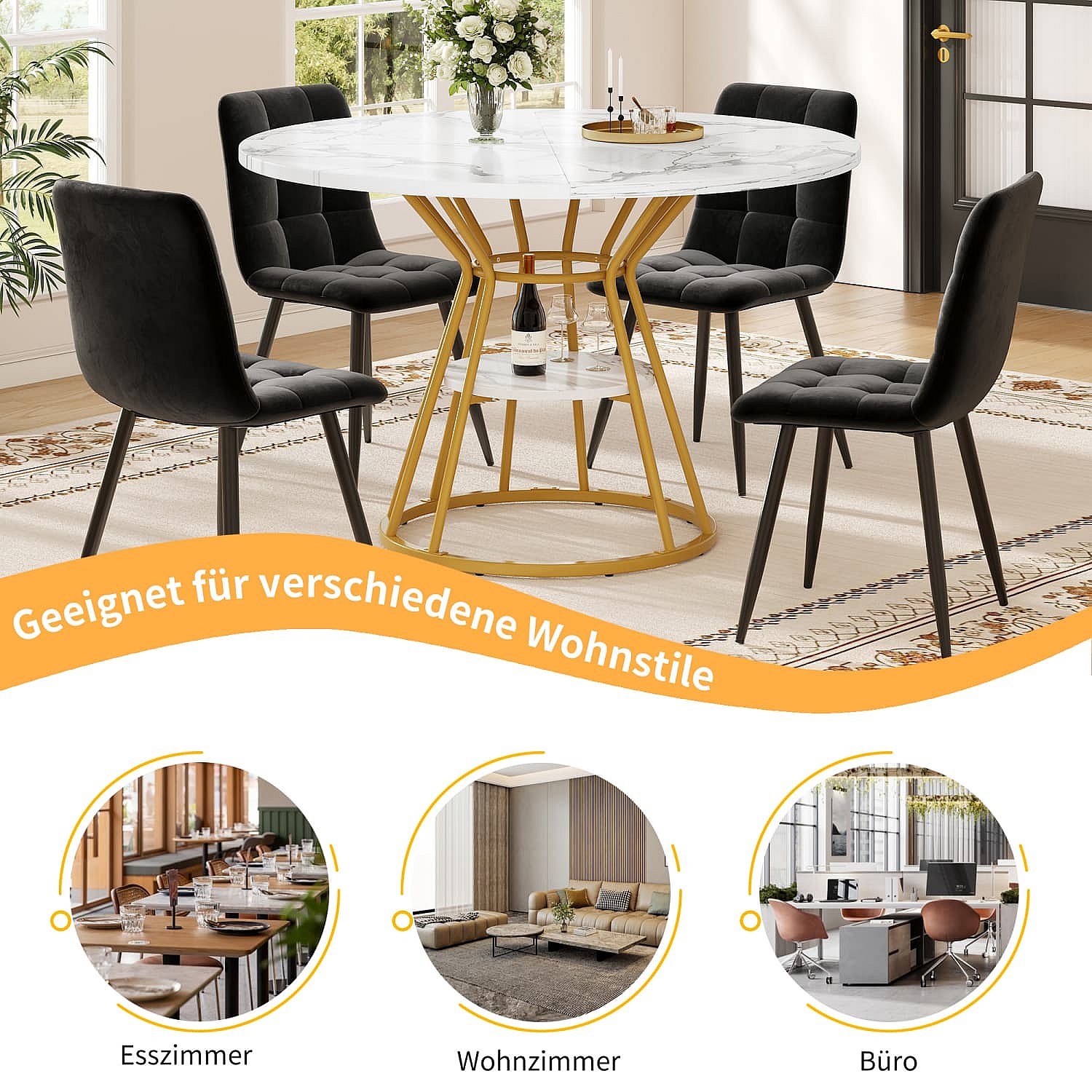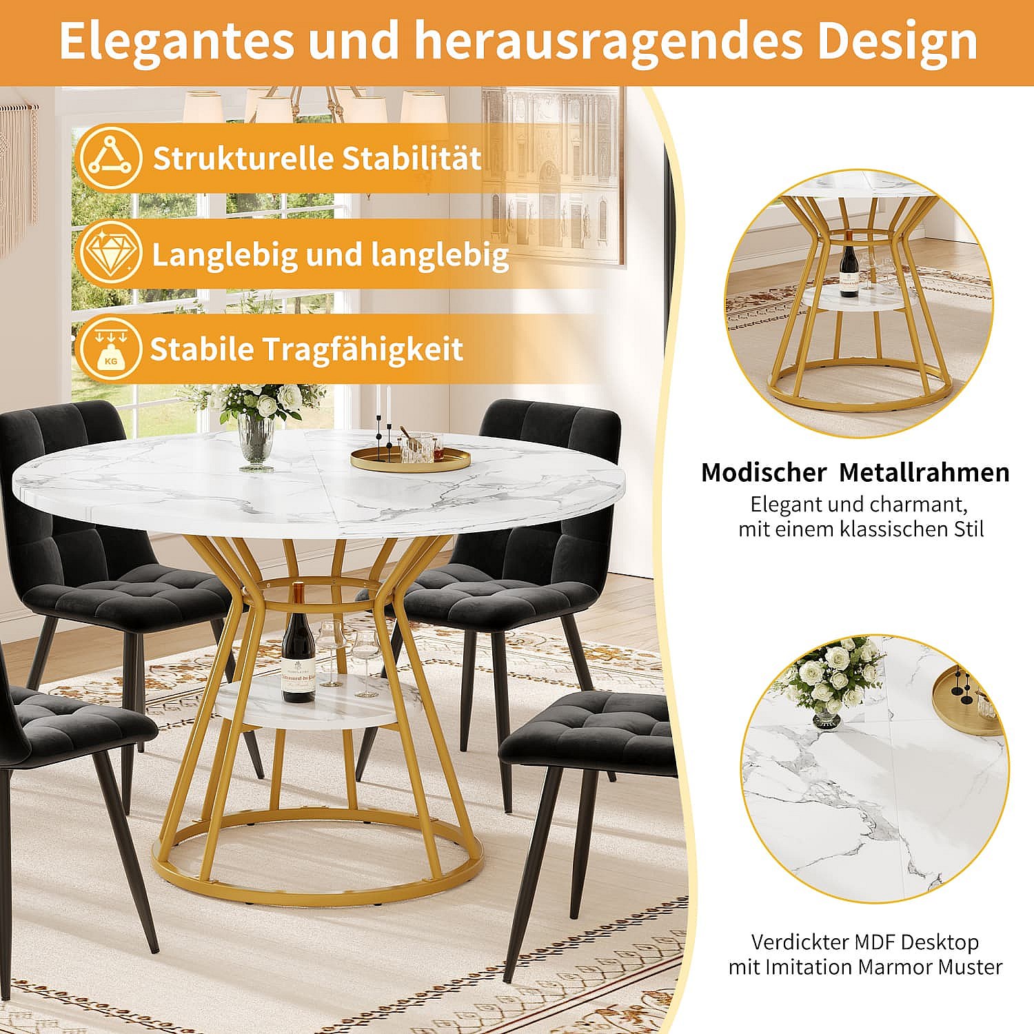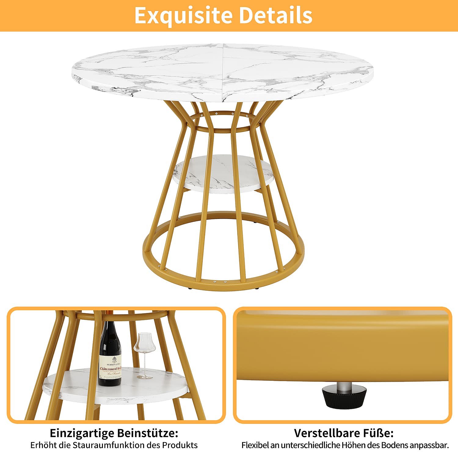 Runder Esstisch (Gold) Küchentisch Frühstückstisch Metallbeine Marmormuster