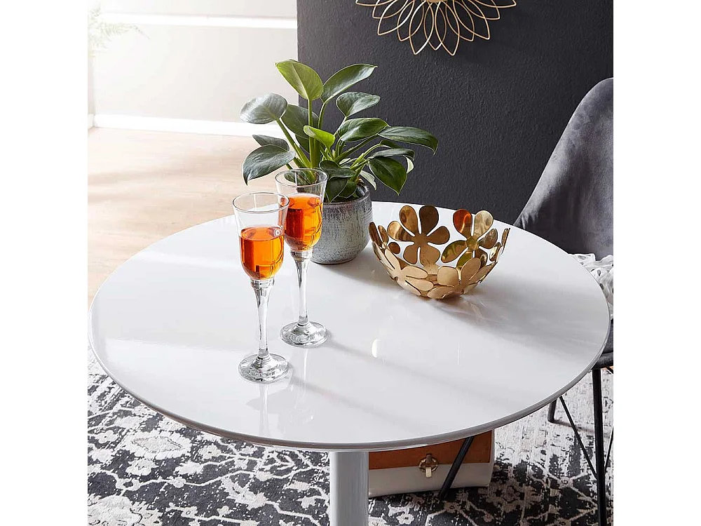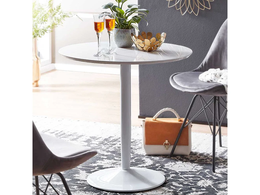 Runder Esstisch in Weiß Hochglanz 75 cm Durchmesser