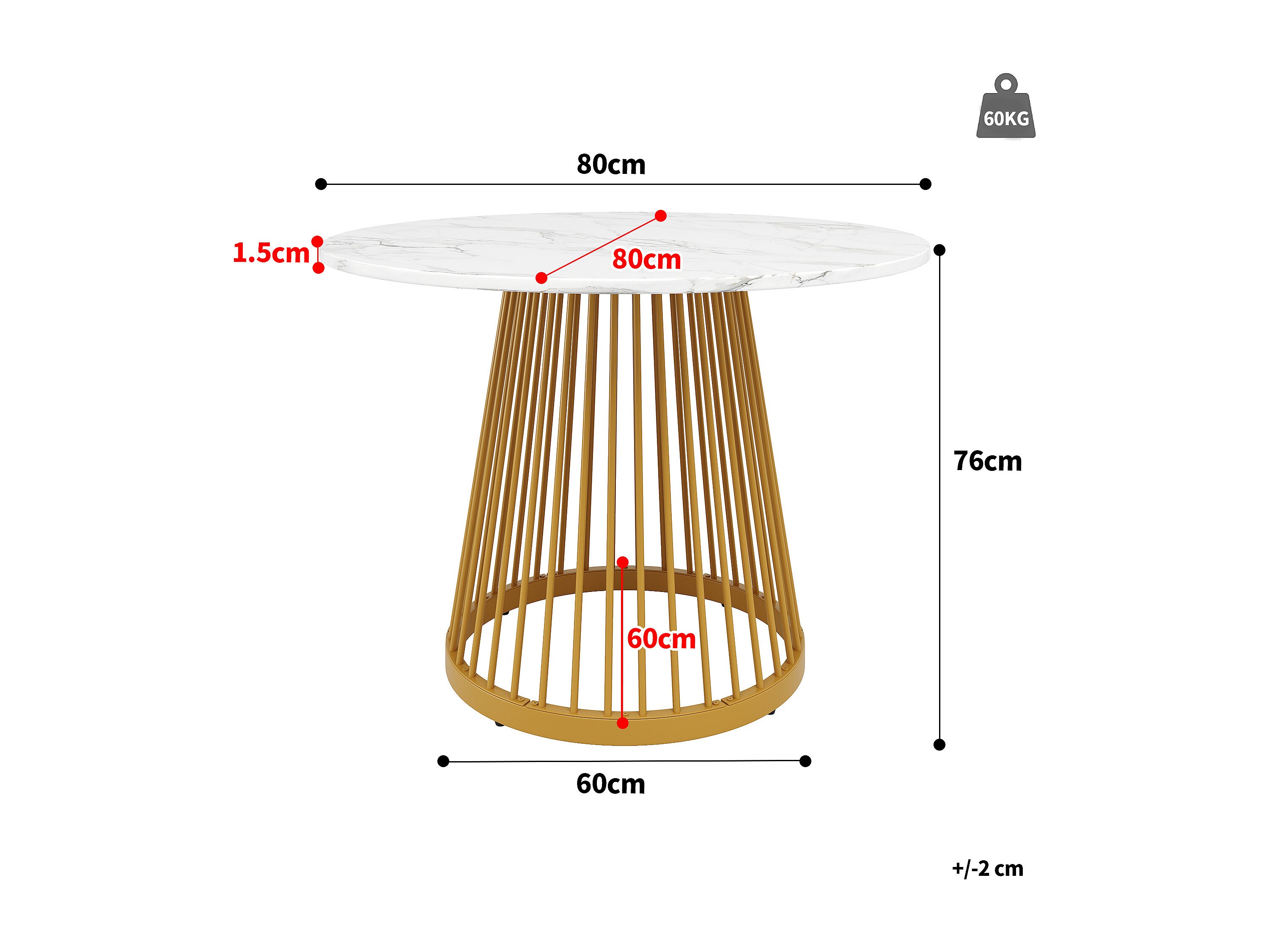 Runder Esstisch - Metallgestell - Marmor-Optik - für 2 bis 4 Personen - MDF - Weiß & Gold