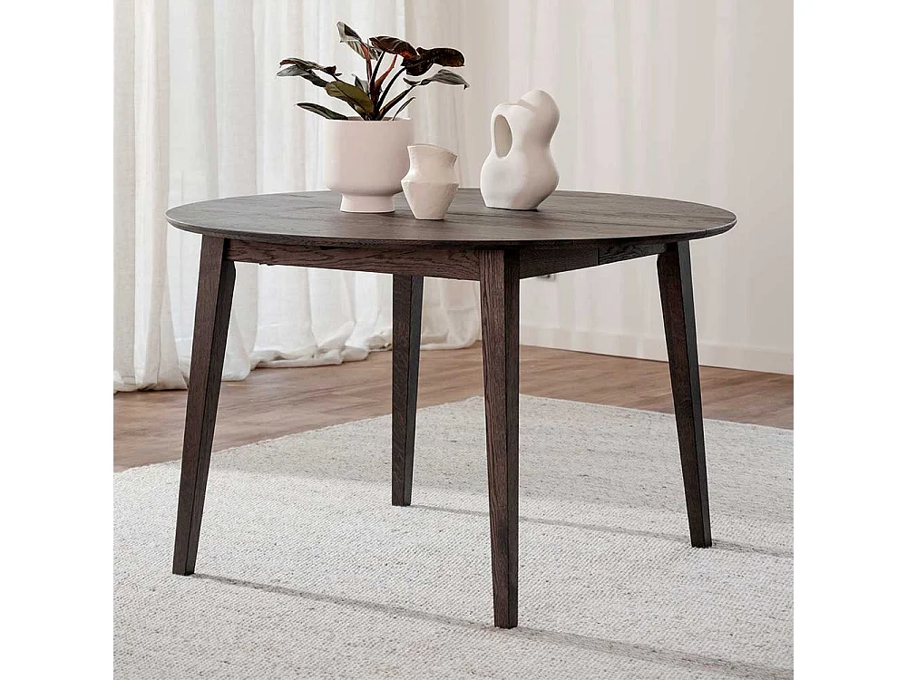 Runder Esszimmer Tisch im Skandi Design Massivholzplatte