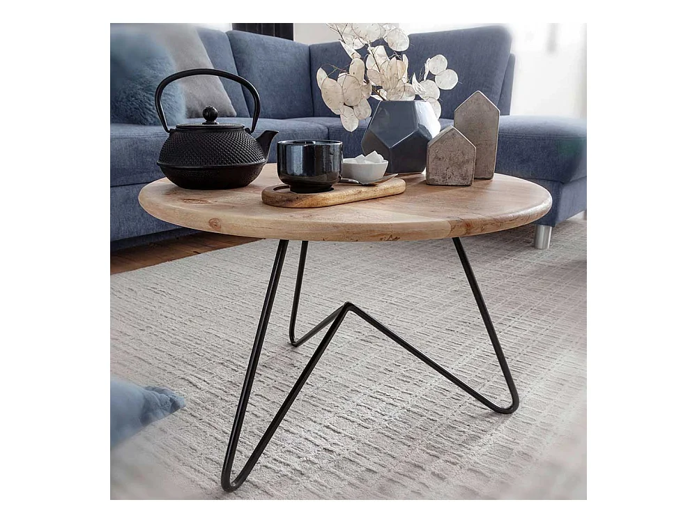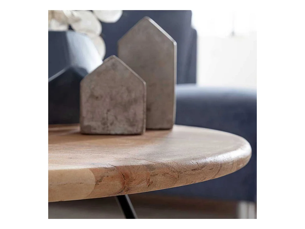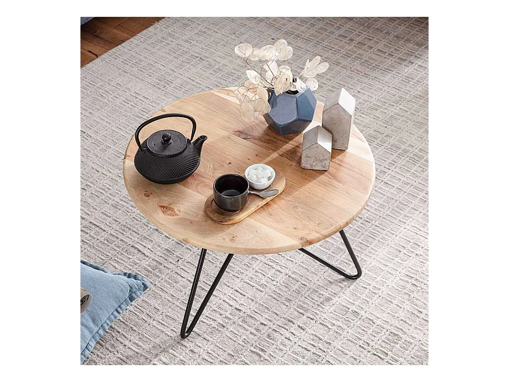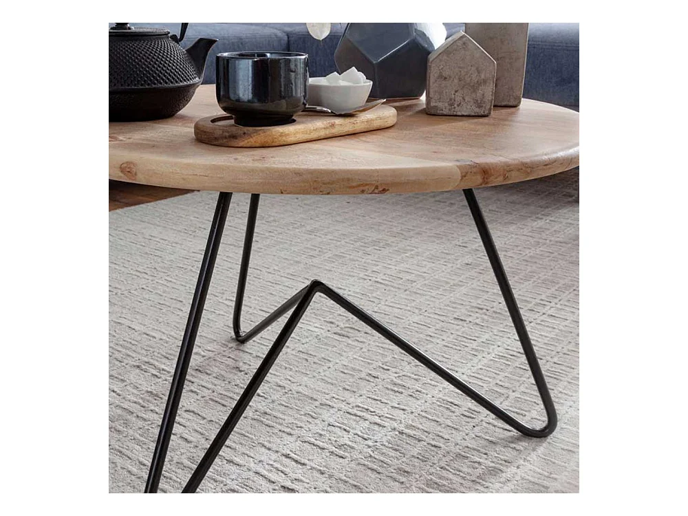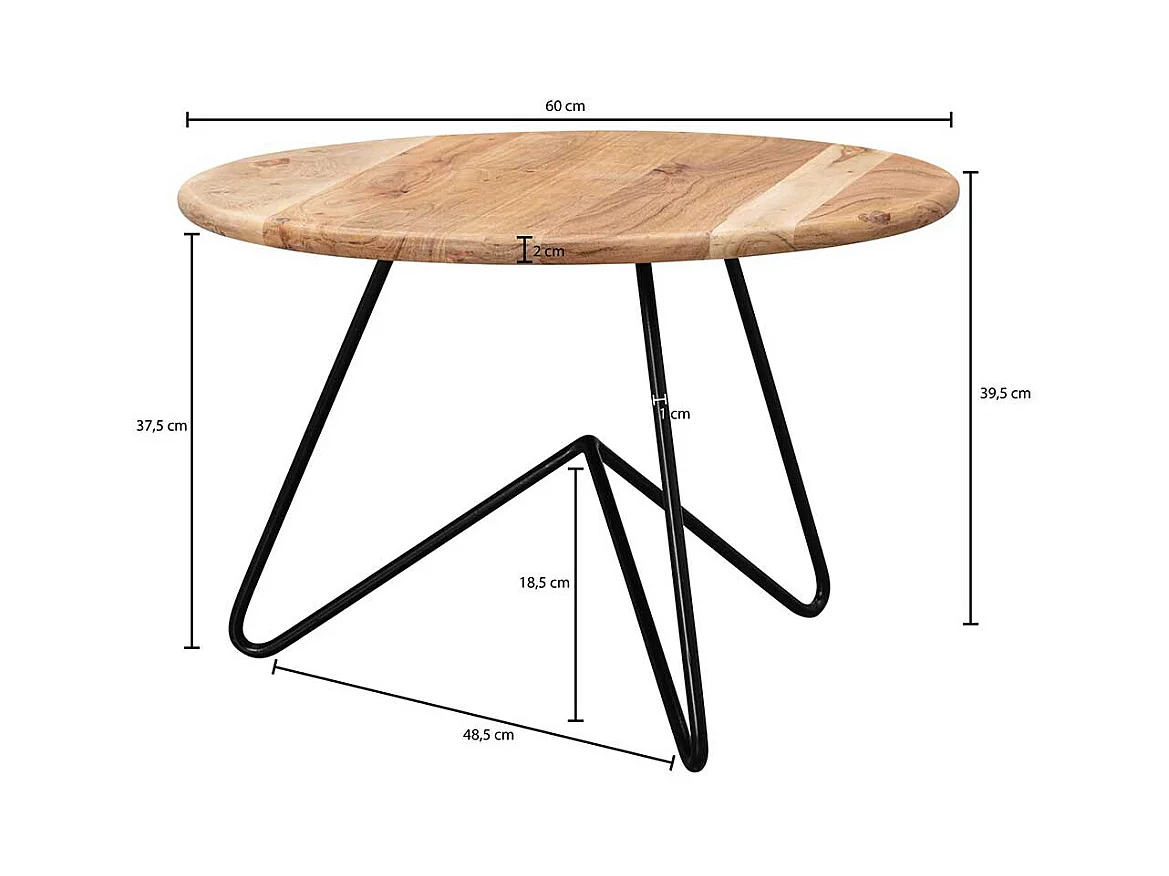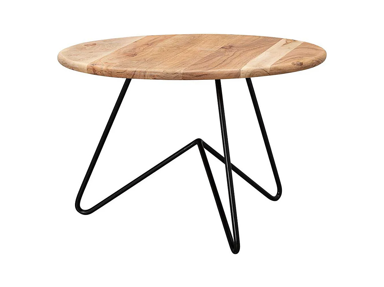 Runder Holz Couchtisch aus Akazie Massivholz 3-Fußgestell aus Edelstahl