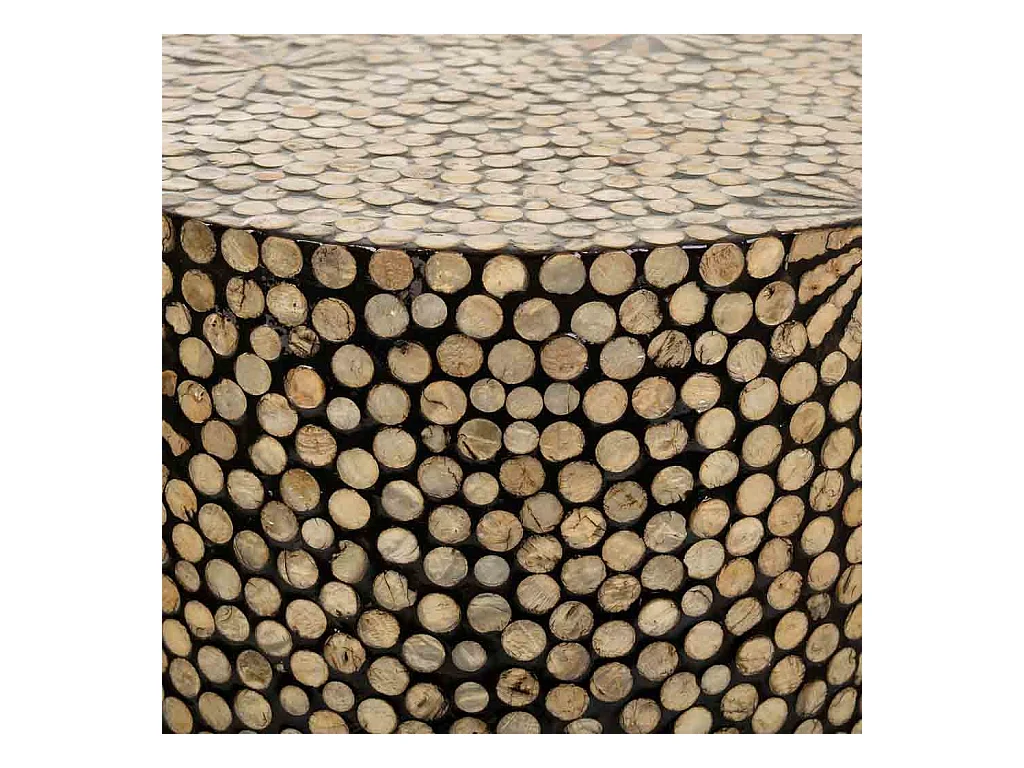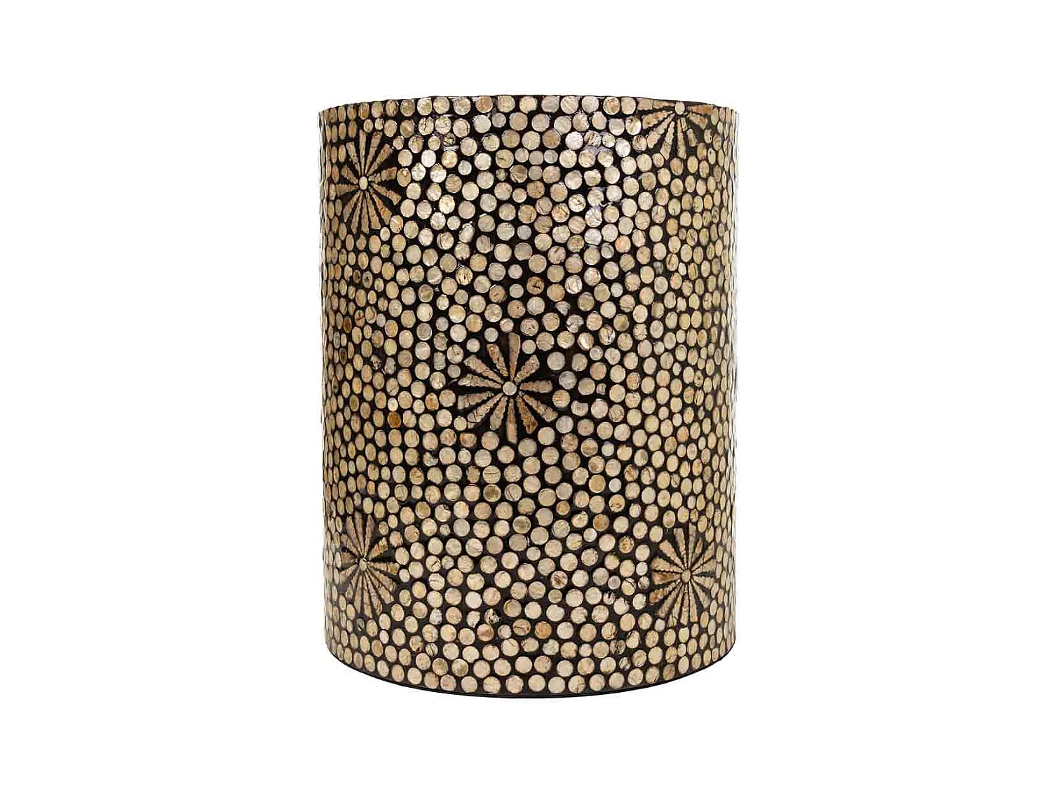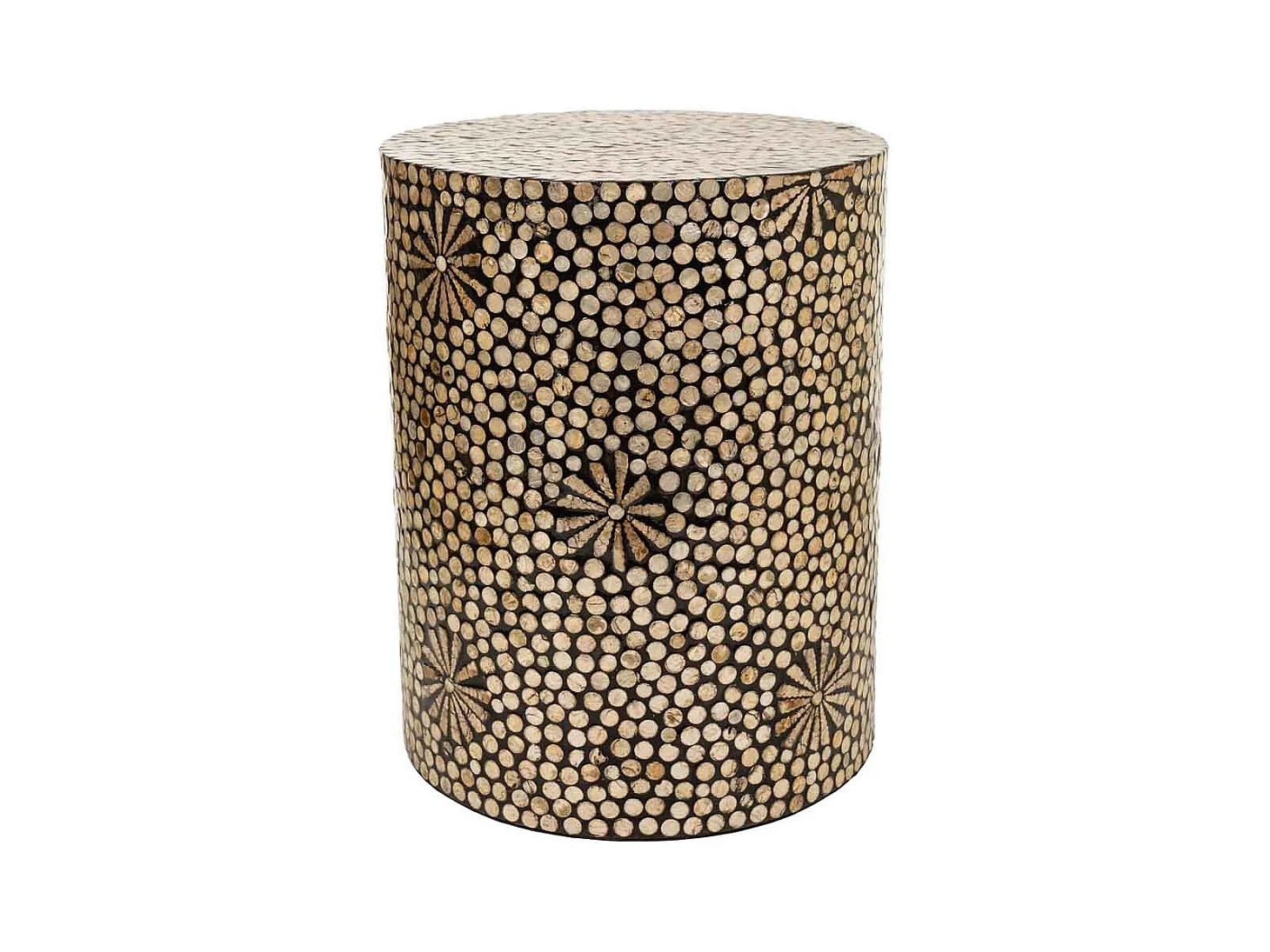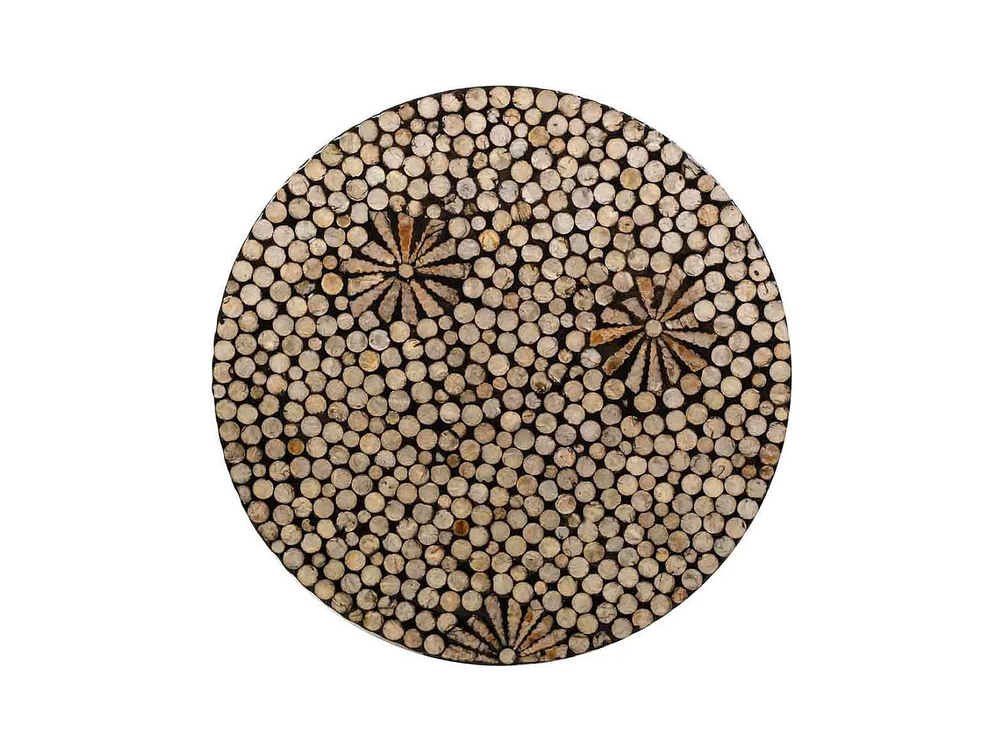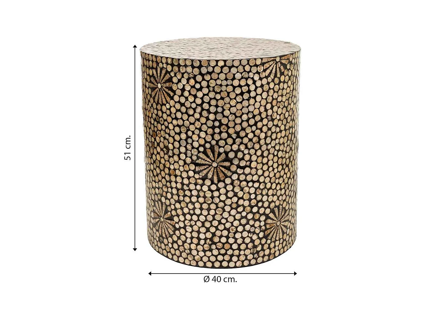 Runder Holzhocker mit braunem Capiz-Finish, 40 x 40 x 51 cm