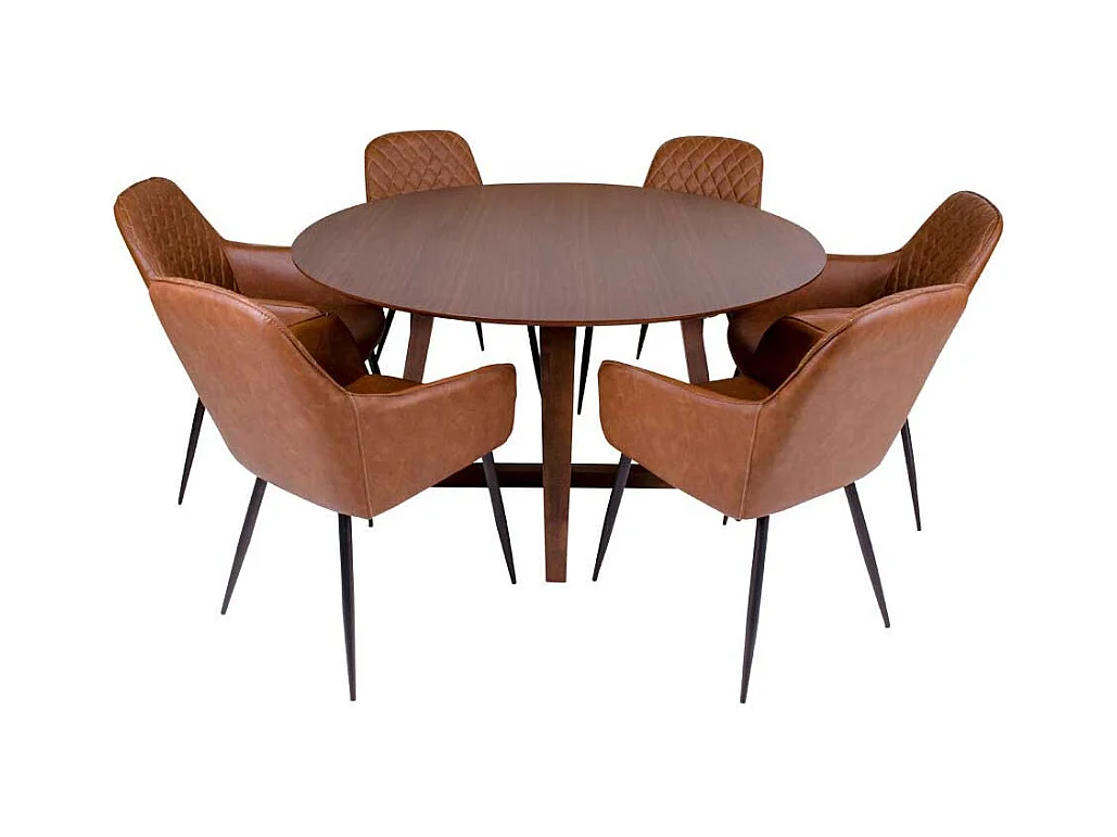 Runder Küchentisch in Walnussfarben furniert Bügelgestell
