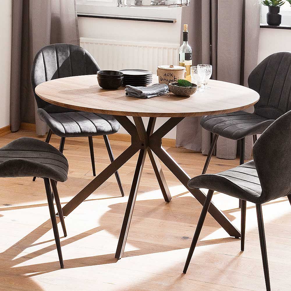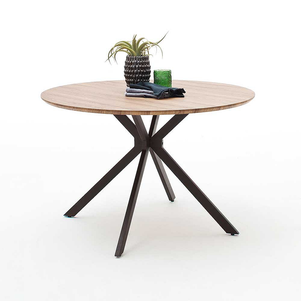 Runder K�chentisch in Wildeichefarben und Anthrazit 120 cm Durchmesser