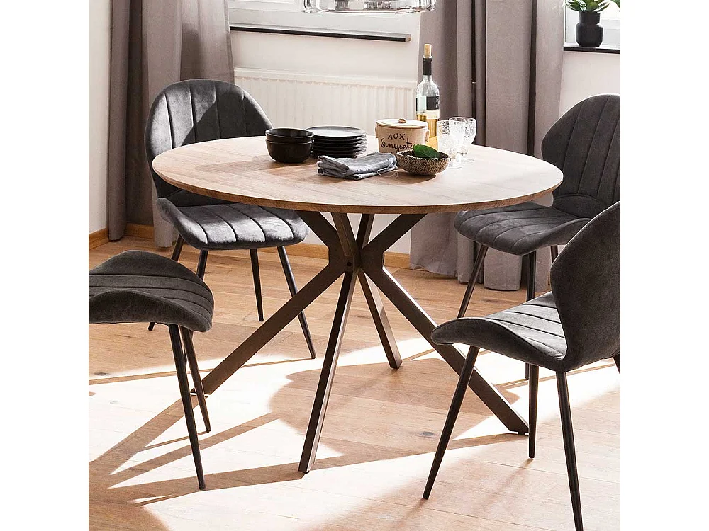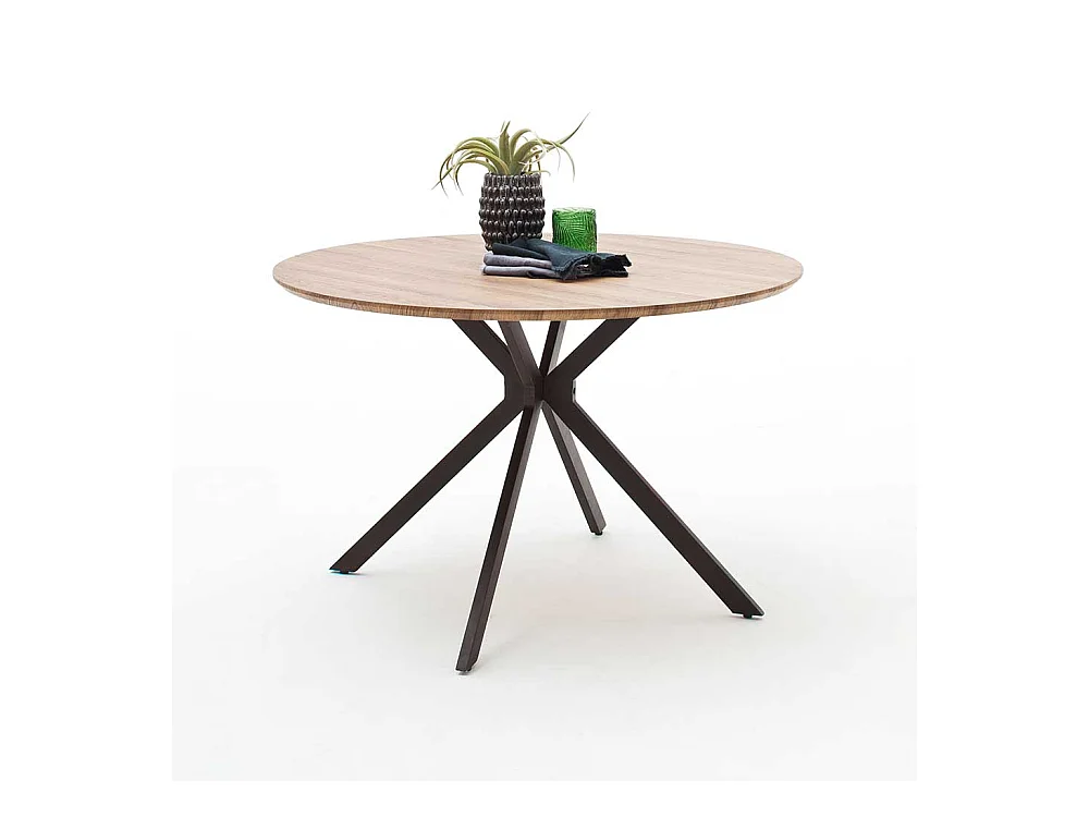 Runder Küchentisch in Wildeichefarben und Anthrazit 120 cm Durchmesser