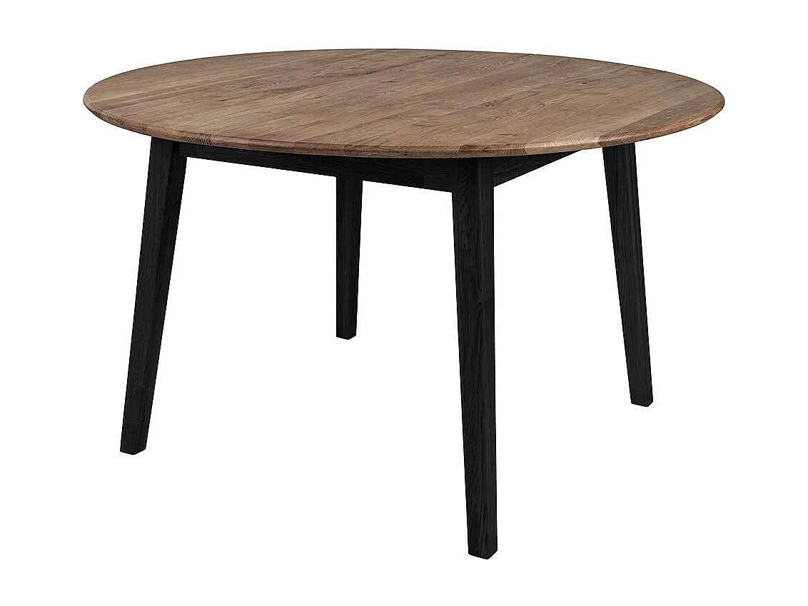 Runder Massivtisch in Eiche Rauchfarben geölt Schwarz