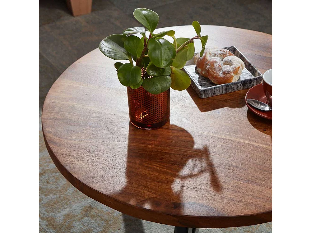 Runder Sofa Tisch in Sheeshamfarben und Schwarz 60 cm Durchmesser