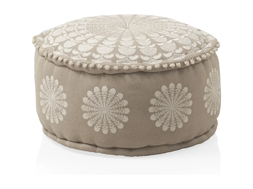 Runder Textilhocker, Durchmesser 55 cm, Leinenfarbe