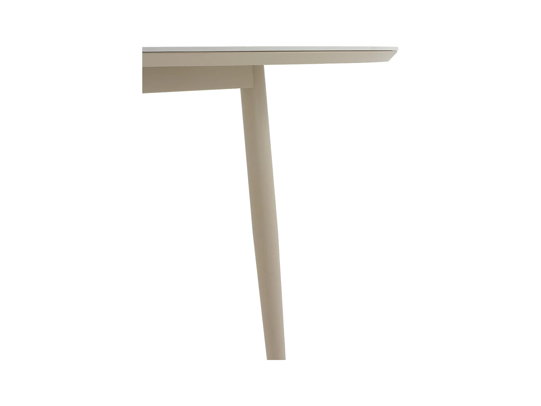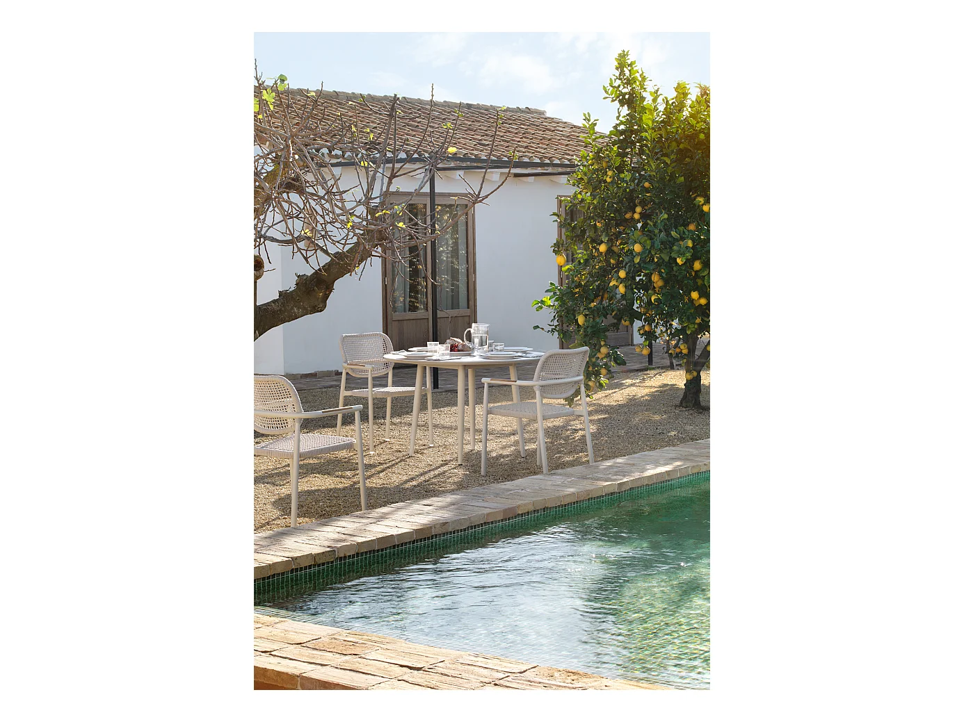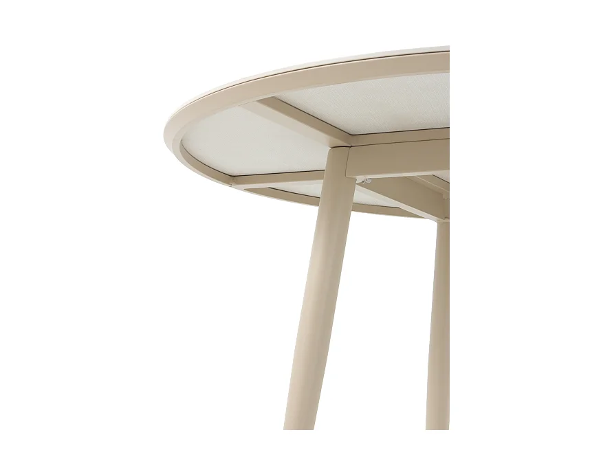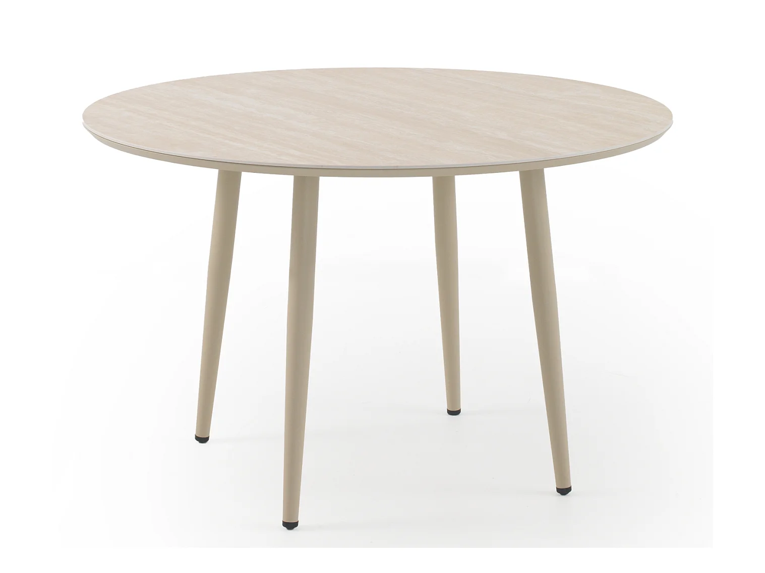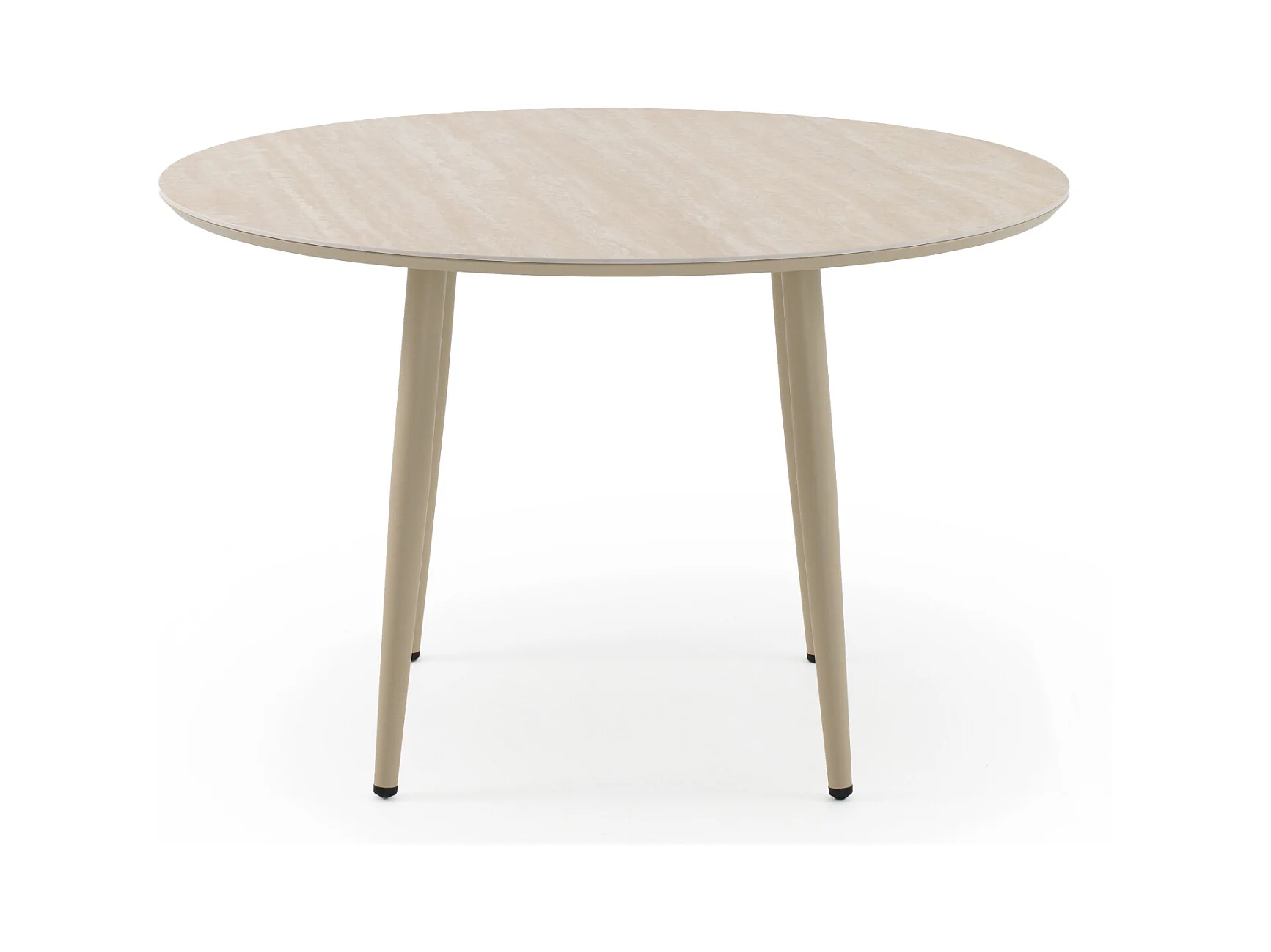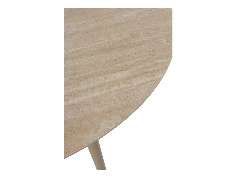 Runder Tisch aus Aluminium mit Keramikplatte aus Travertin