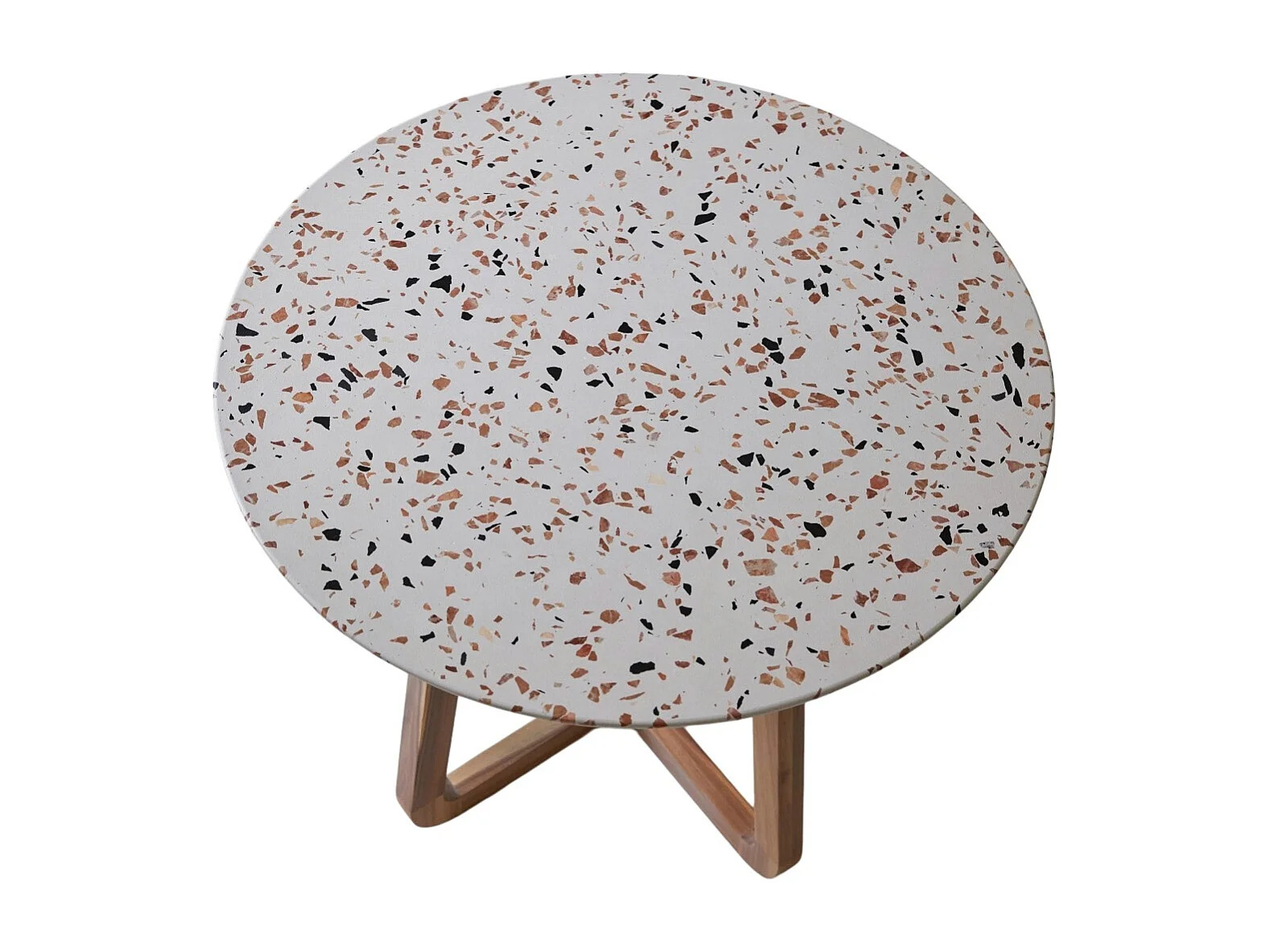 Runder Tisch Elio brown aus Premium-Terrazzo und massivem Akazienholz, 90 cm