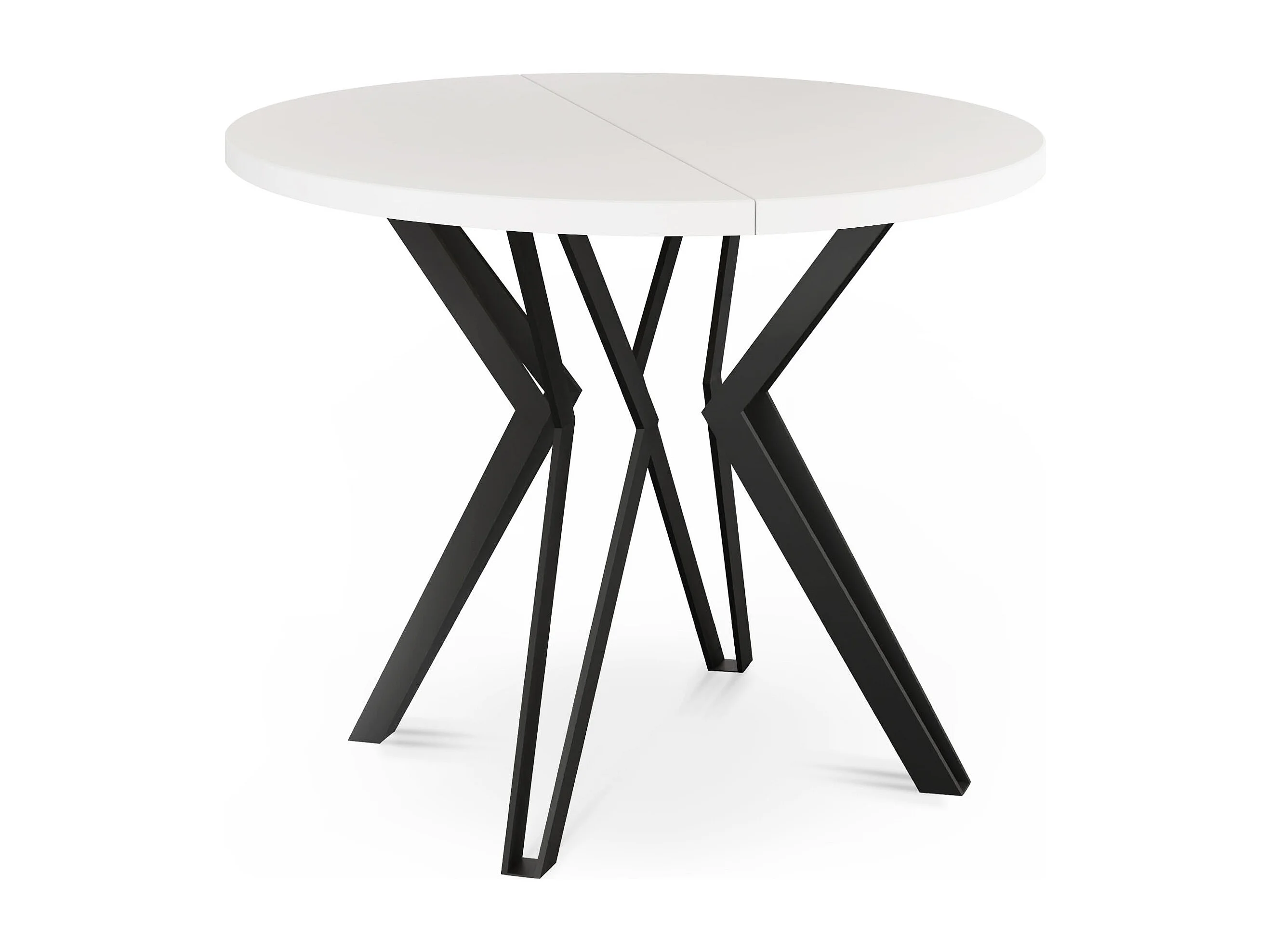 Runder Tisch für das Esszimmer - 100 oder 120 cm Durchmesser - Ausziehbarer Tisch mit Pulverbeschichteten Schwarzen Metallbeinen - 100 cm - Weiß