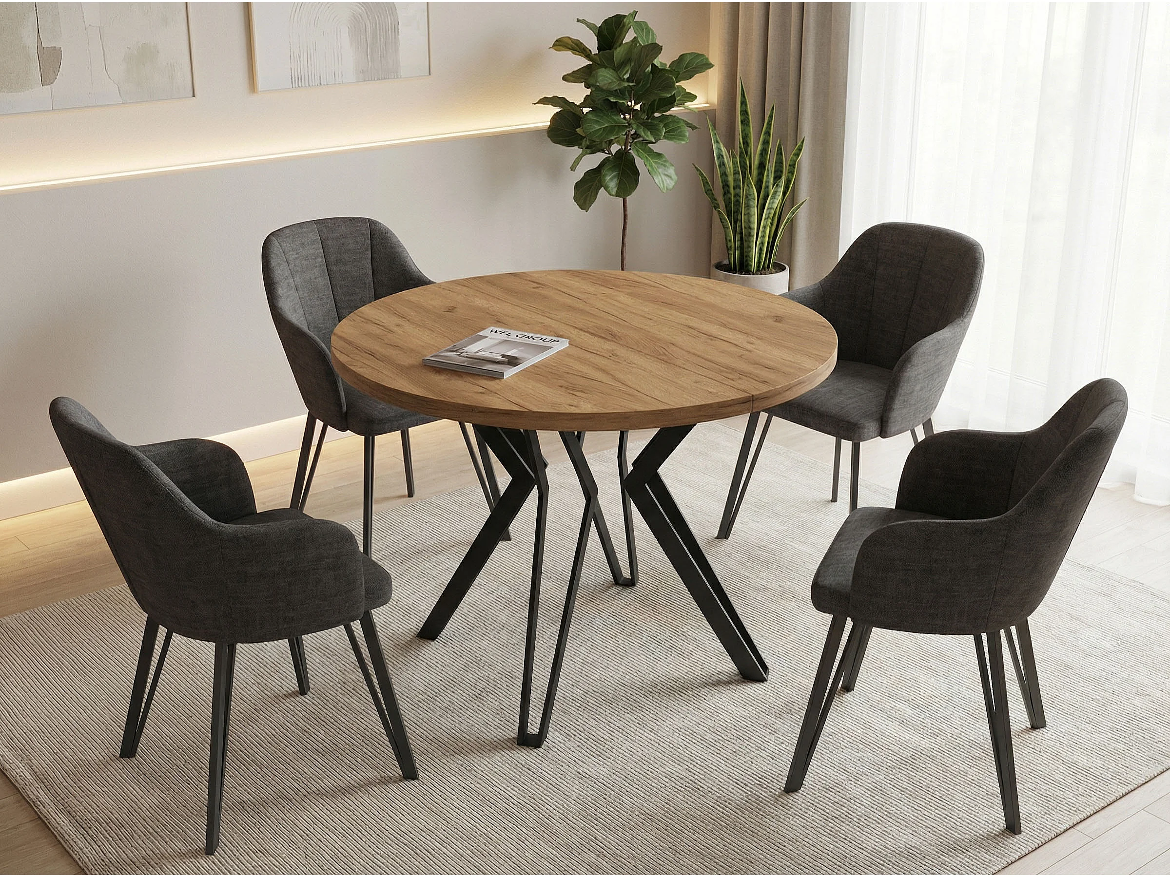 Runder Tisch für das Esszimmer - 100 oder 120 cm Durchmesser - Ausziehbarer Tisch mit Pulverbeschichteten Schwarzen Metallbeinen - 120 cm - Craft Eiche