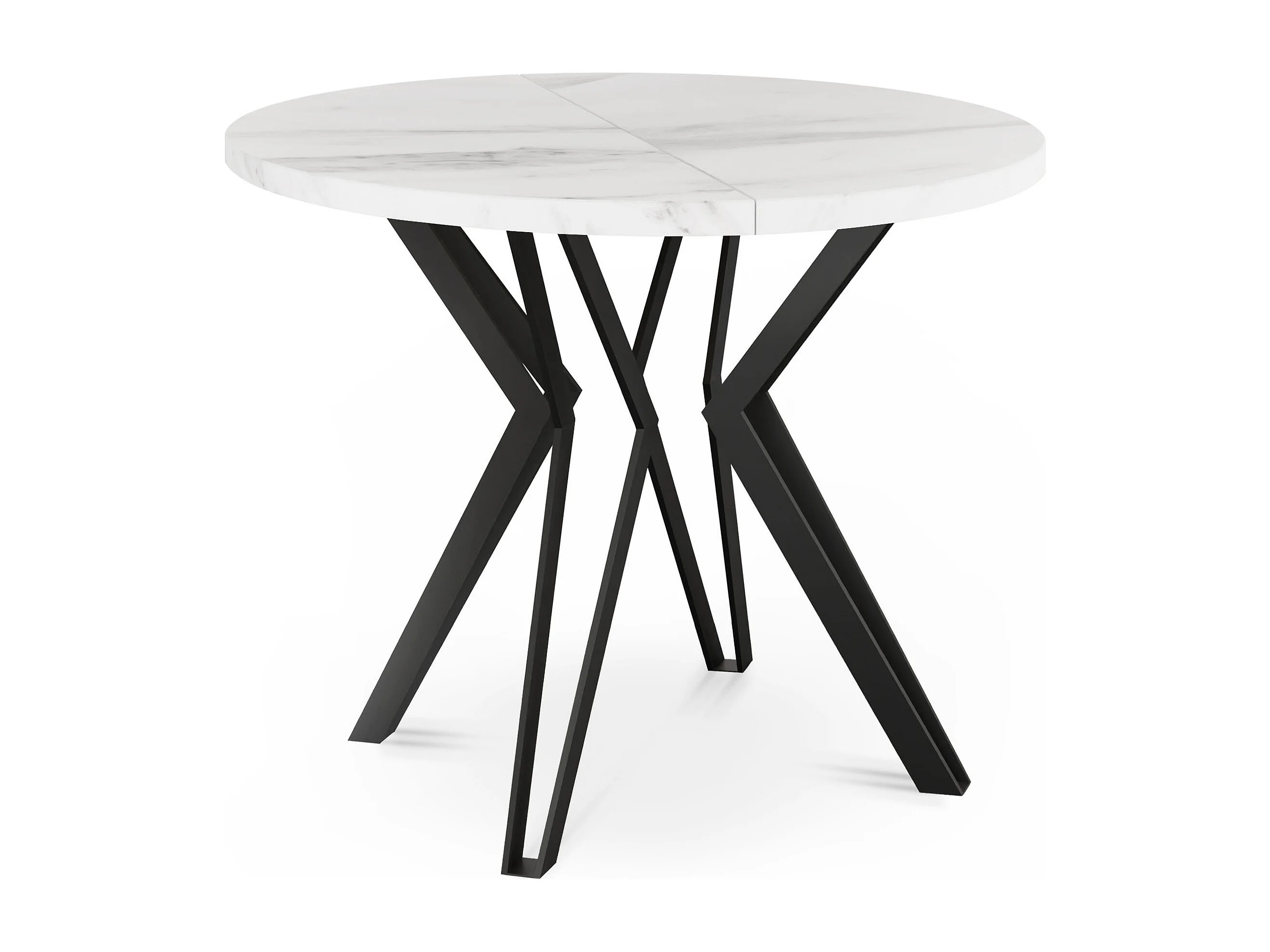 Runder Tisch für das Esszimmer - 100 oder 120 cm Durchmesser - Ausziehbarer Tisch mit Pulverbeschichteten Schwarzen Metallbeinen - 120 cm - Marmor Weiß