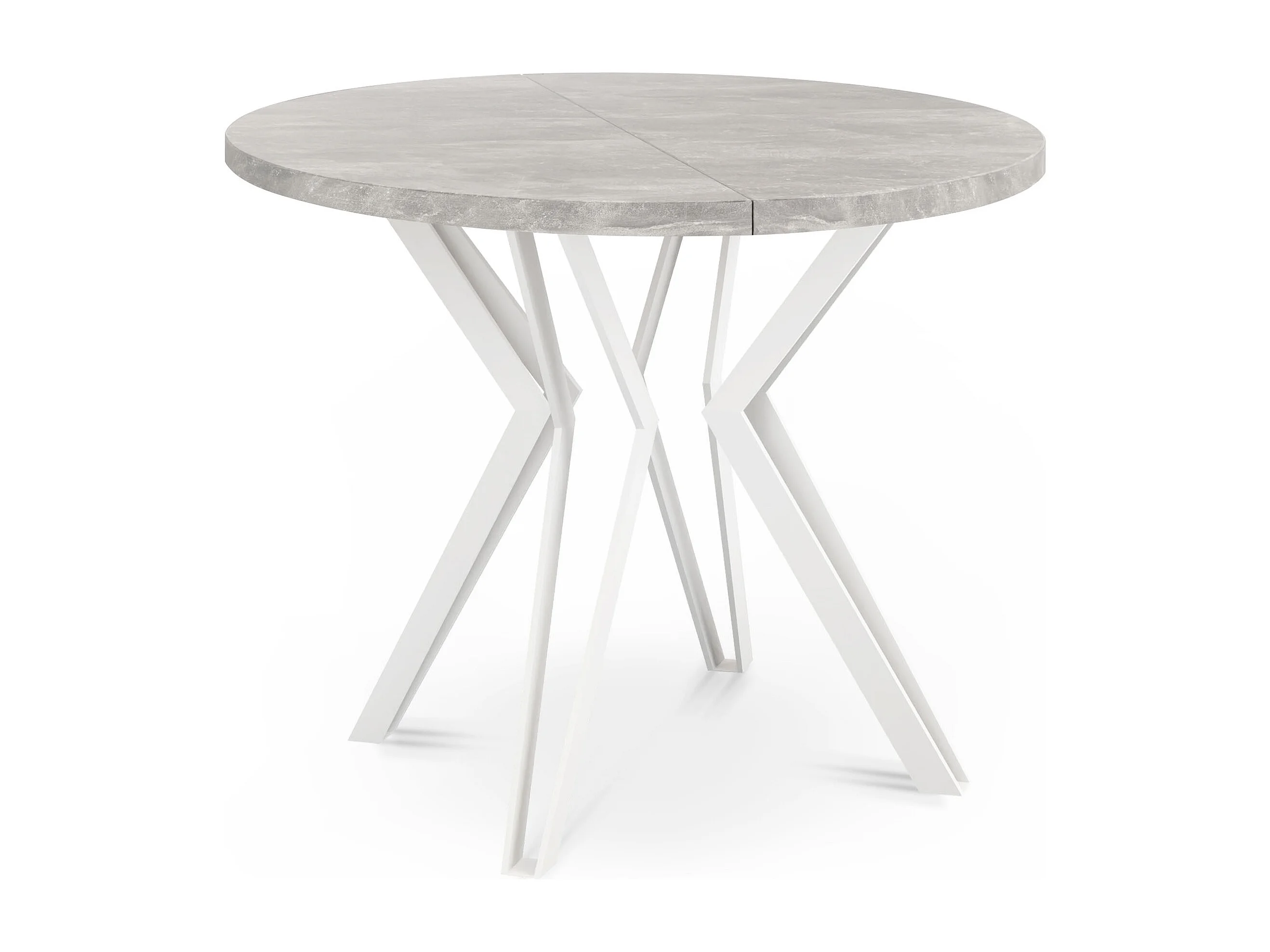 Runder Tisch für das Esszimmer - 100 oder 120 cm Durchmesser - Ausziehbarer Tisch mit Pulverbeschichteten Weißen Metallbeinen - 120 cm - Beton Grau
