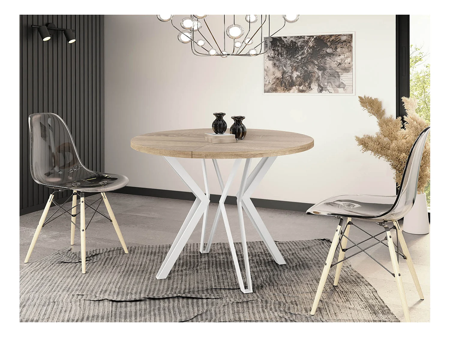 Runder Tisch für das Esszimmer - 100 oder 120 cm Durchmesser - Ausziehbarer Tisch mit Pulverbeschichteten Weißen Metallbeinen - 120 cm - Sonoma Eiche