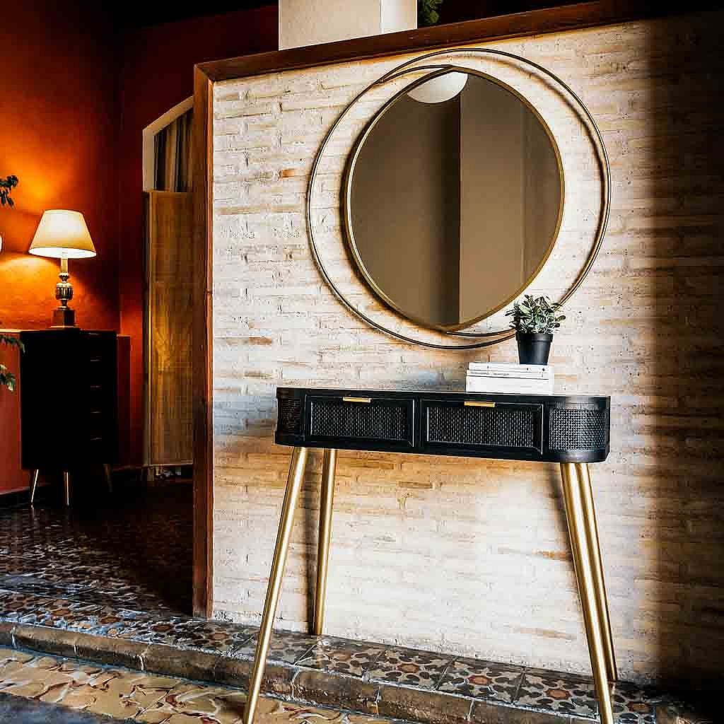 Runder Wandspiegel aus goldfarbenem Metall, T91 x 2,5 H cm