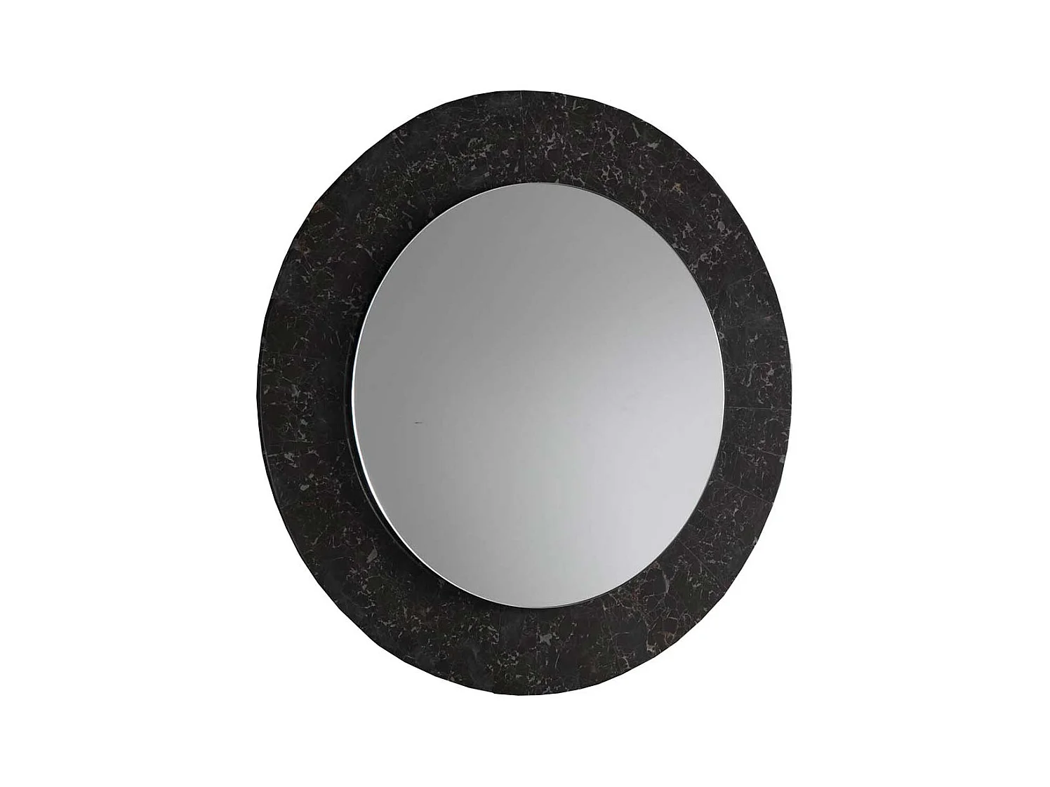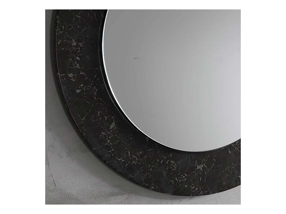 Runder Wandspiegel mit Steinrahmen Dunkelgrau und Beige