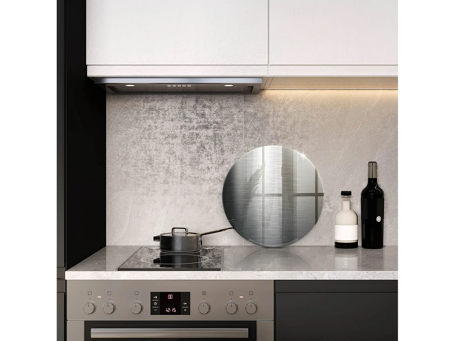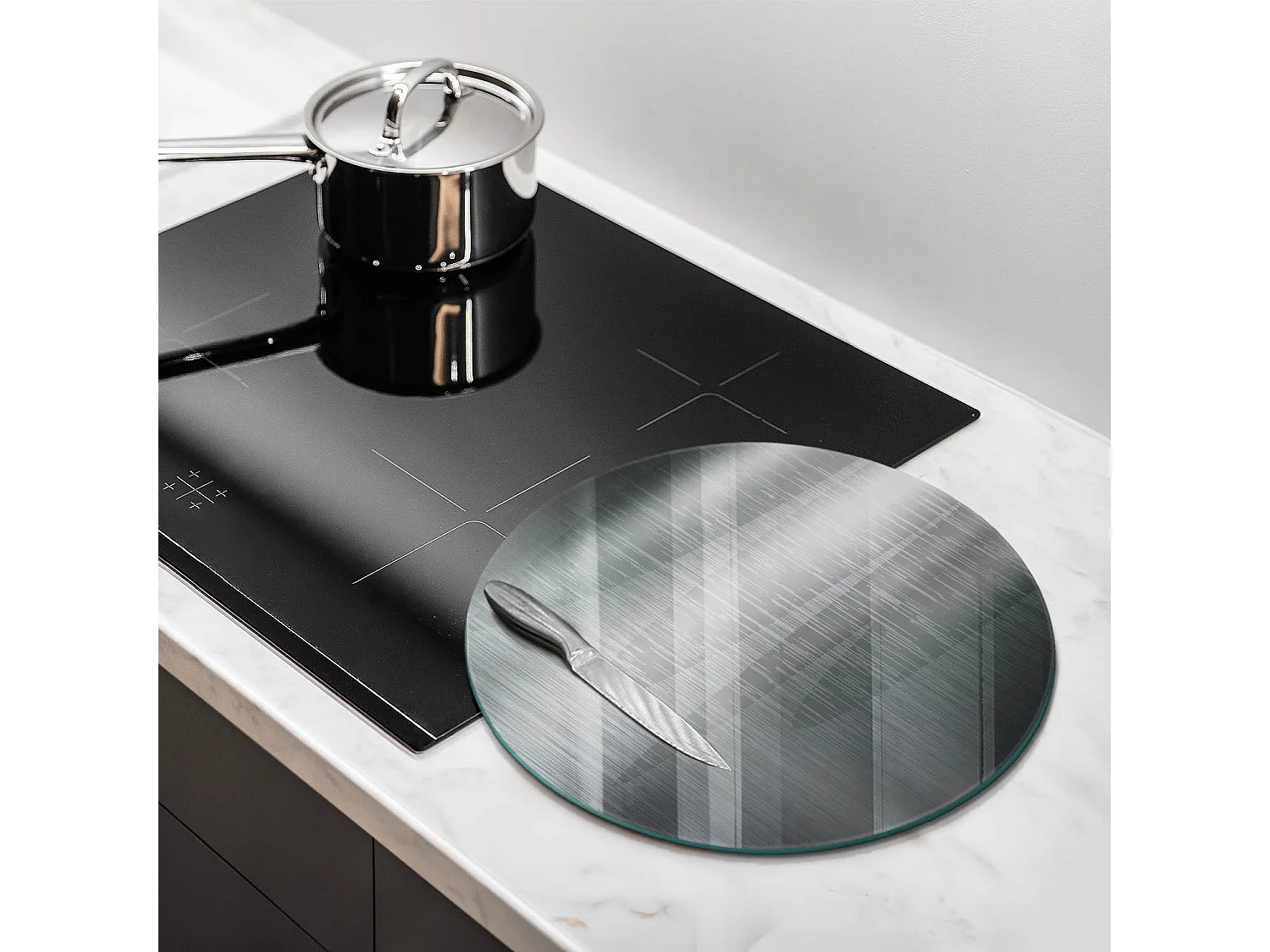 Rundes Küchenbrett aus Glas, 40 cm, Metallstruktur