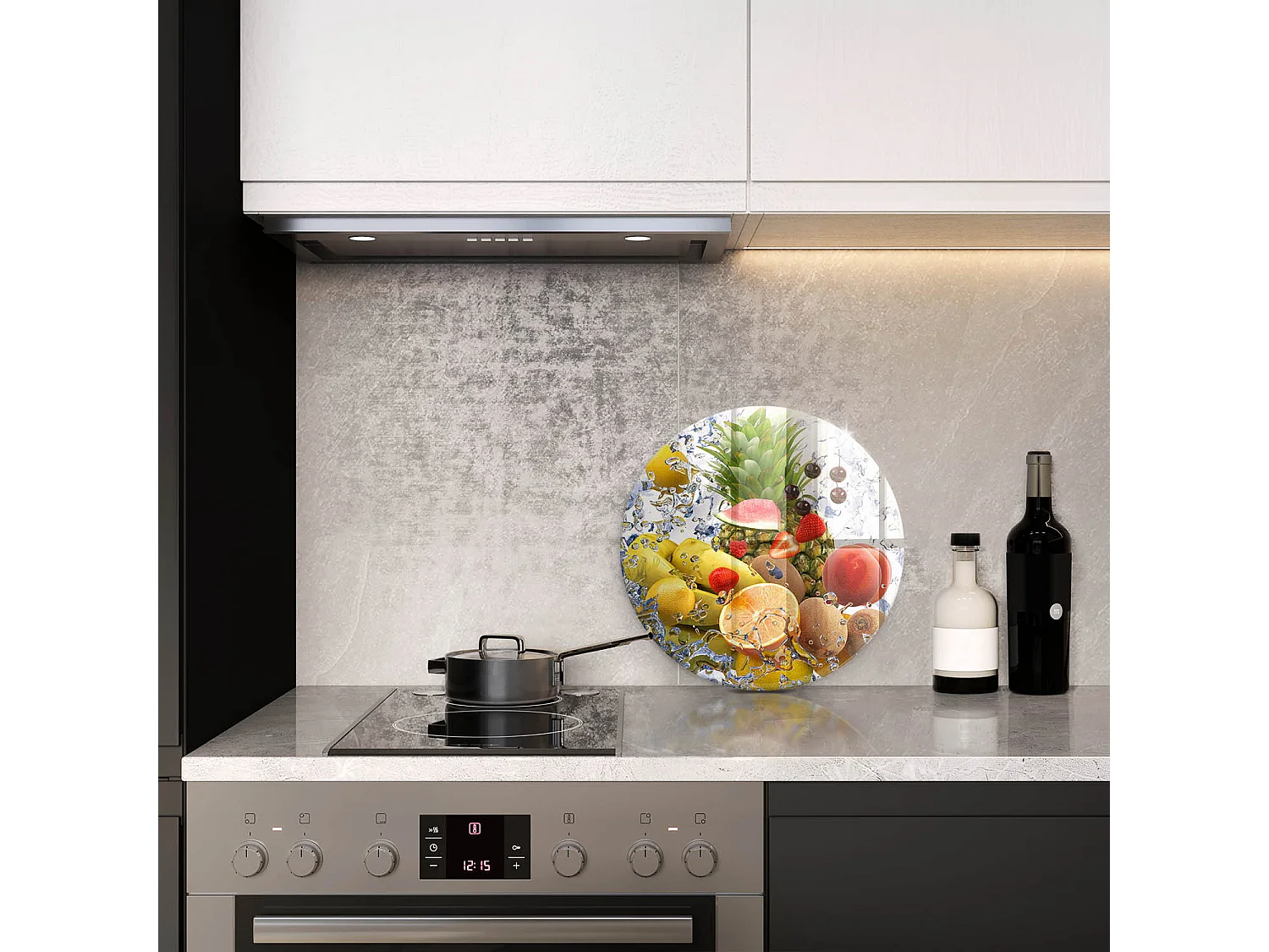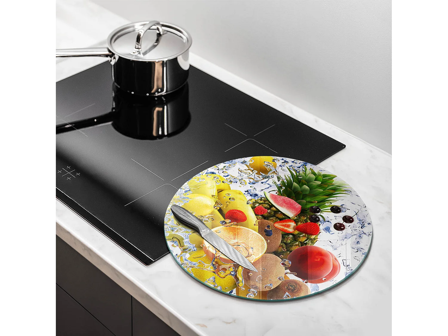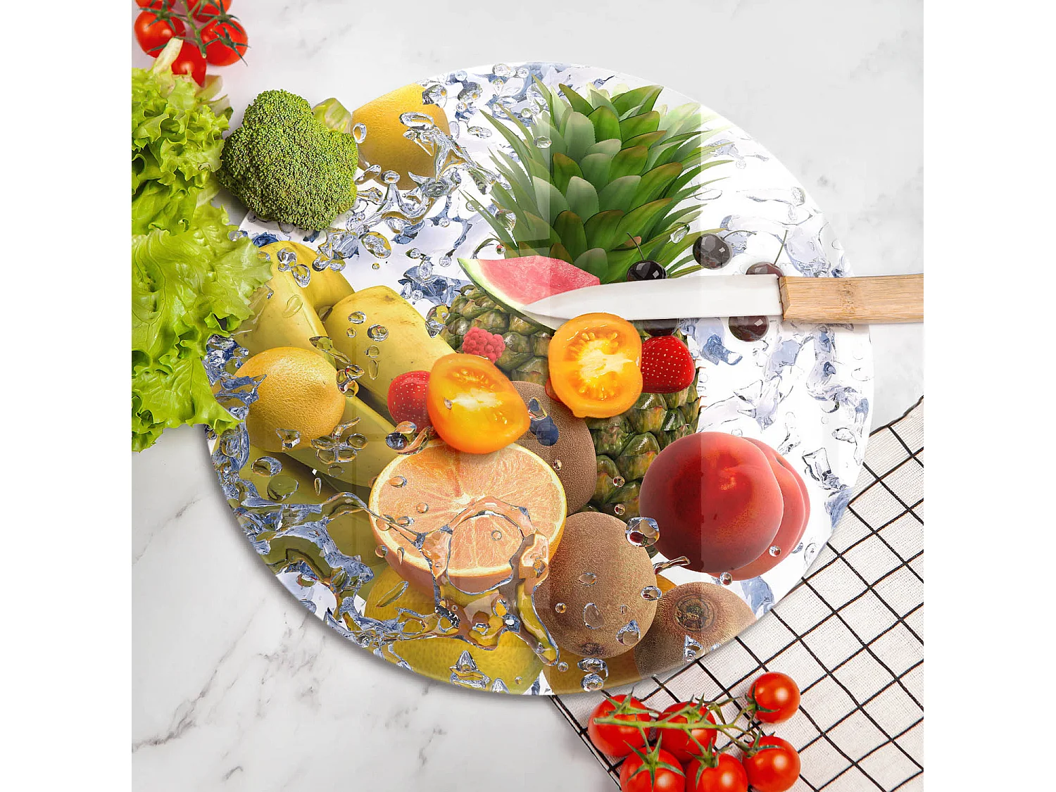 Rundes Küchenbrett aus Glas, 40 cm Saftige Früchte und Wasser