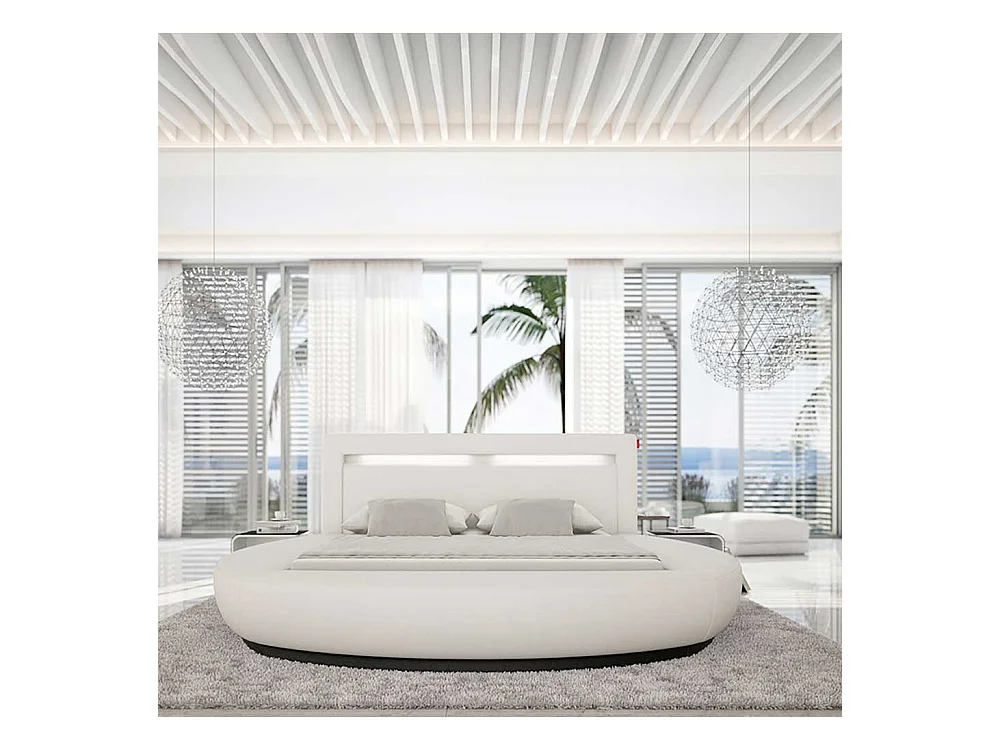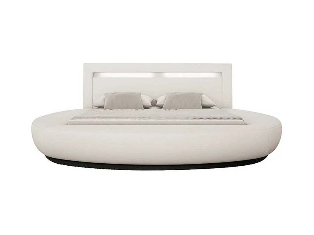 Rundes Polsterbett in Weiß Kunstleder LED Beleuchtung