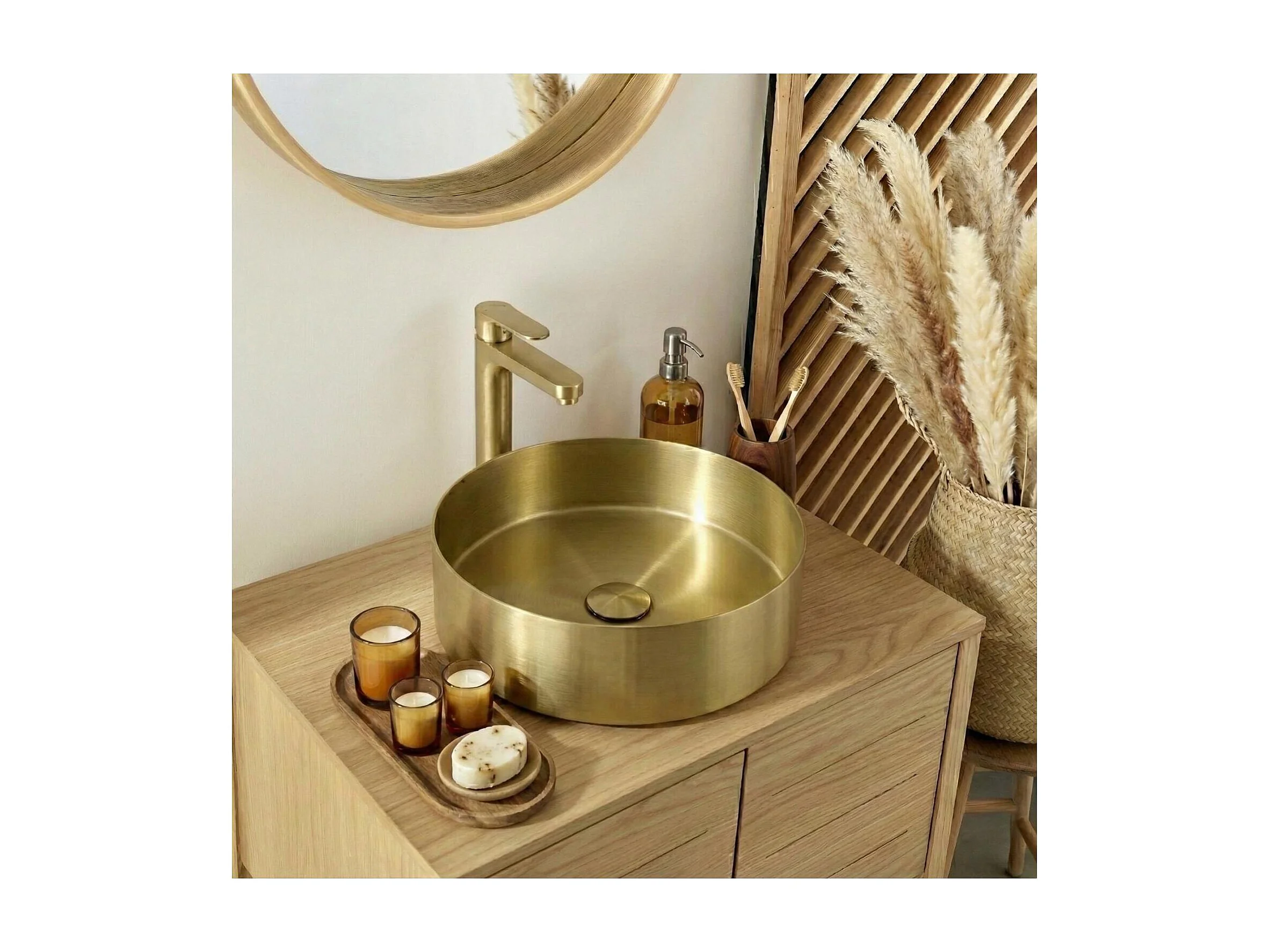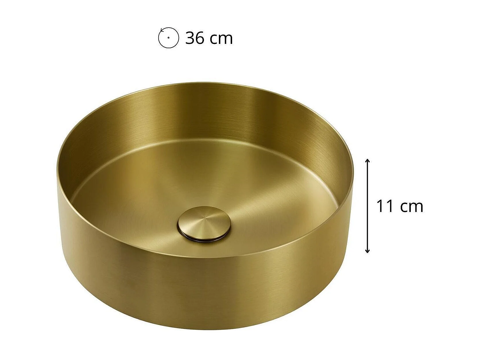 Rundes, schwarzes Edelstahl-Aufsatzwaschbecken, 36 cm, mit passendem Ablaufgarnitur