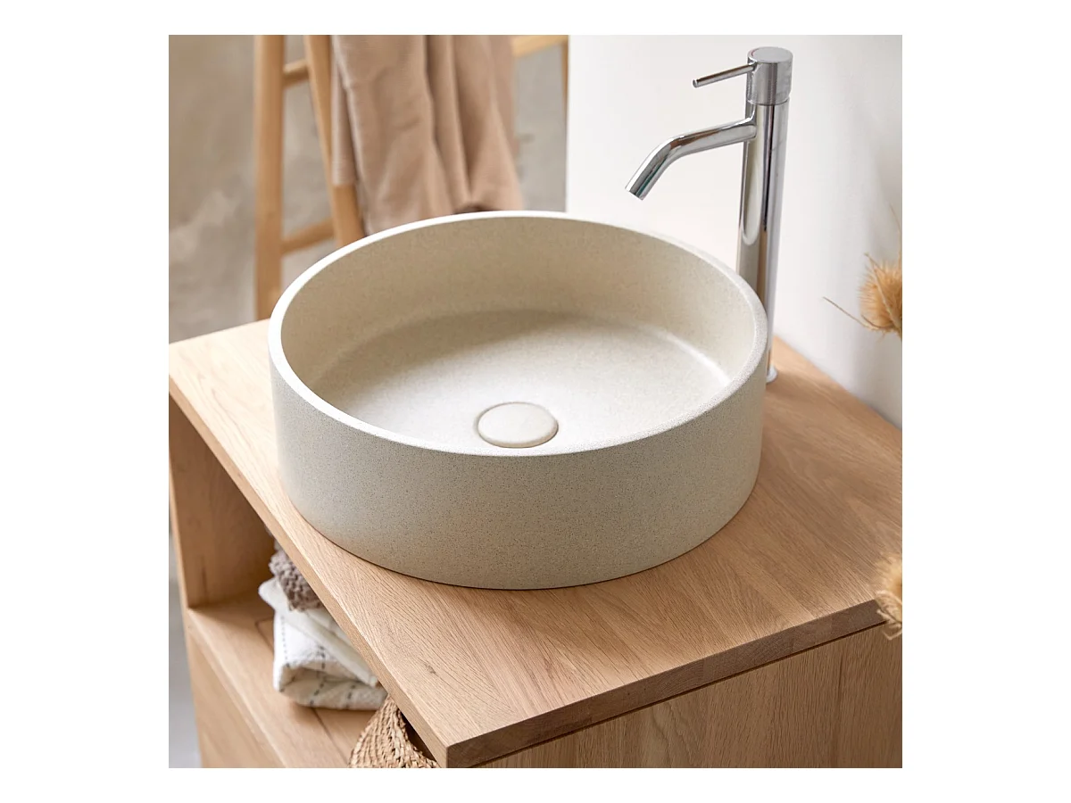 Rundes Waschbecken Gina aus cremefarbenem Terrazzo