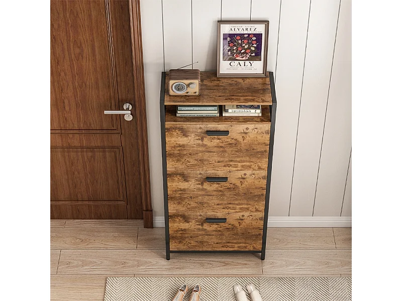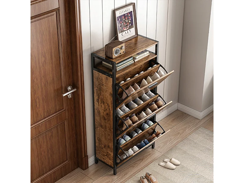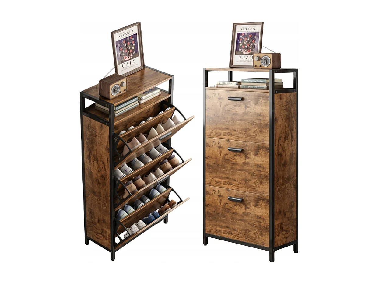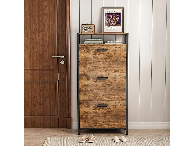 RUSTIKALER SCHUHKASTEN IN BRAUN FÜR DEN FLUR INDUSTRIELL VINTAGE 3 REGALE