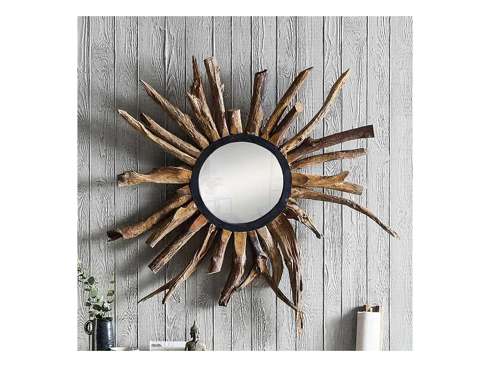 Rustikaler Spiegel aus Suar Massivholz 90 cm breit