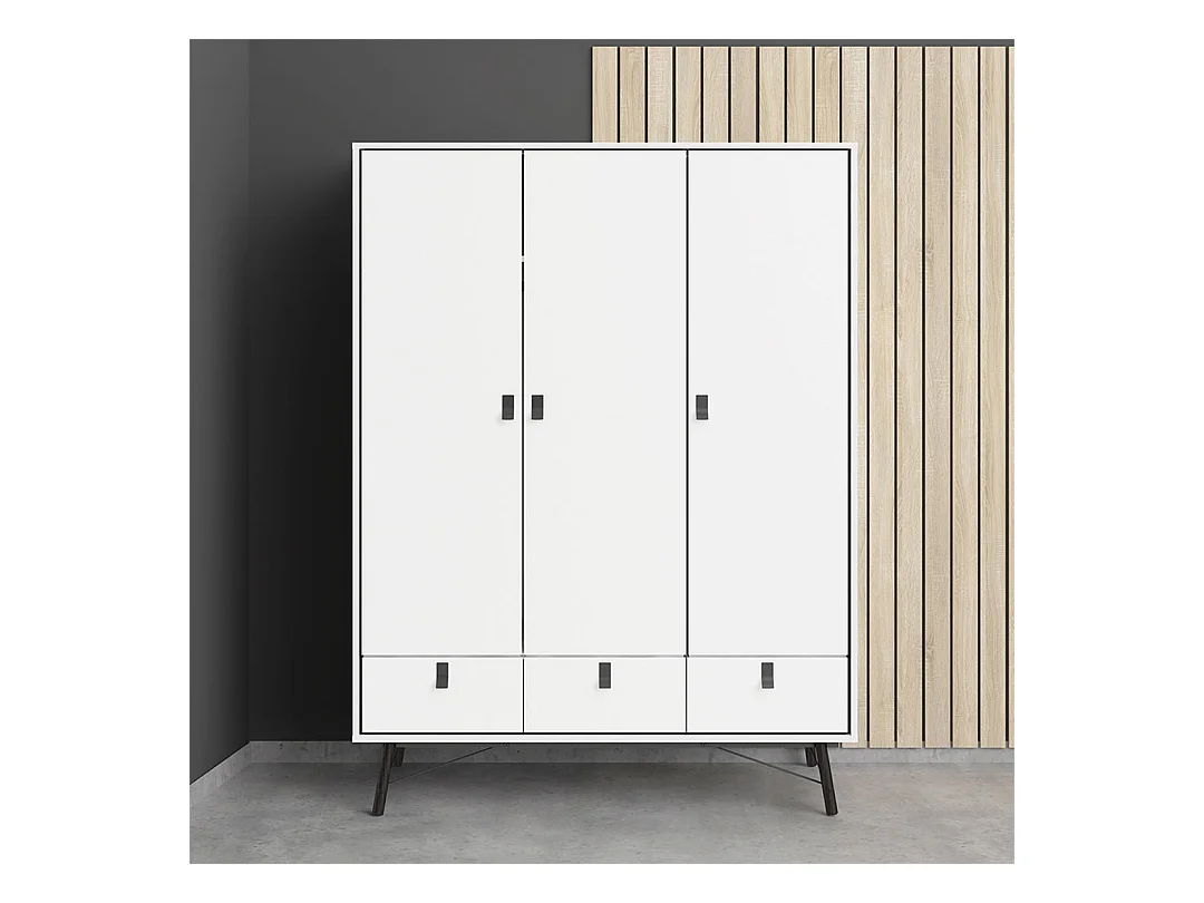 Rye Kleiderschrank 3 Türen, 3 Schubladen mattweiss.