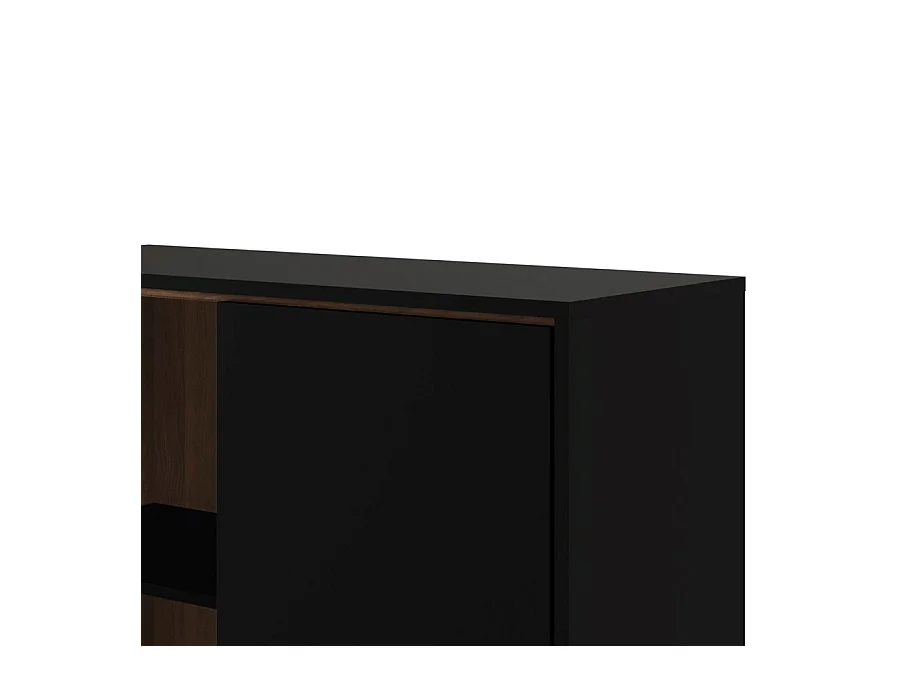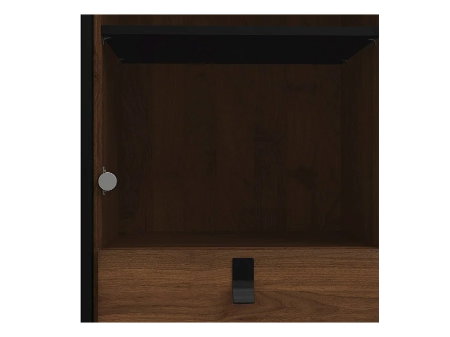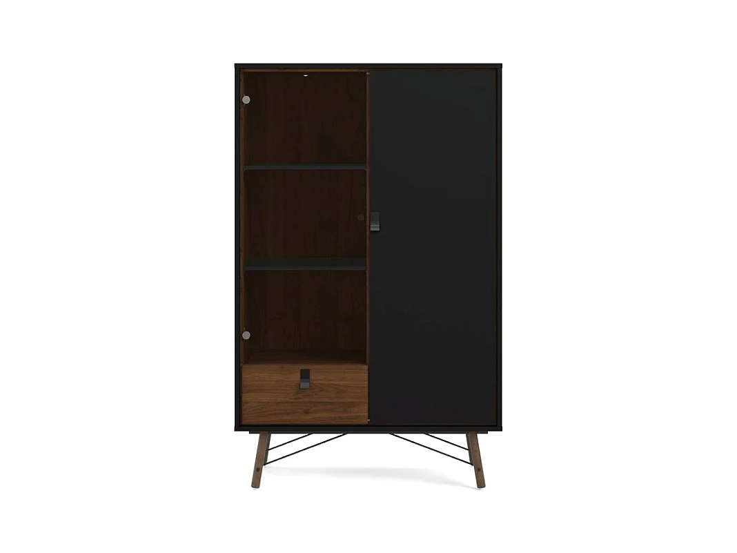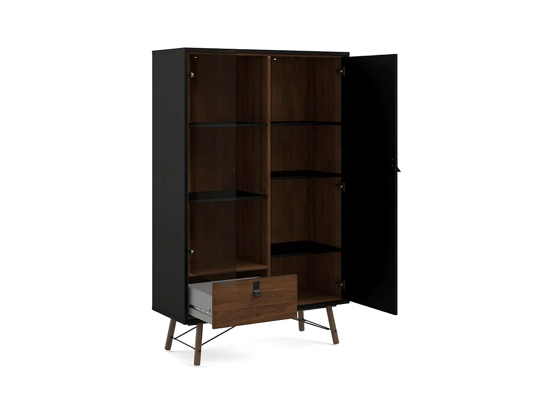 Rye Vitrinenschrank 1 Glastür, 1 Tür, 1 Schublade mattschwarz, wallnuss Dekor.
