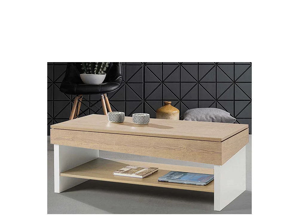 Salontisch in Wildeichefarben und Weiß höhenverstellbar
