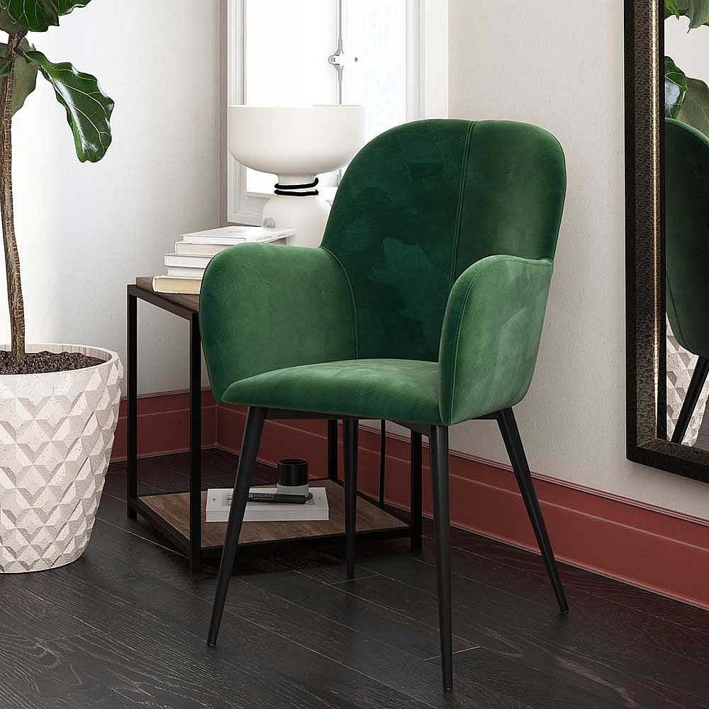 Samt Armlehner Gr�n in modernem Design Gestell aus Metall