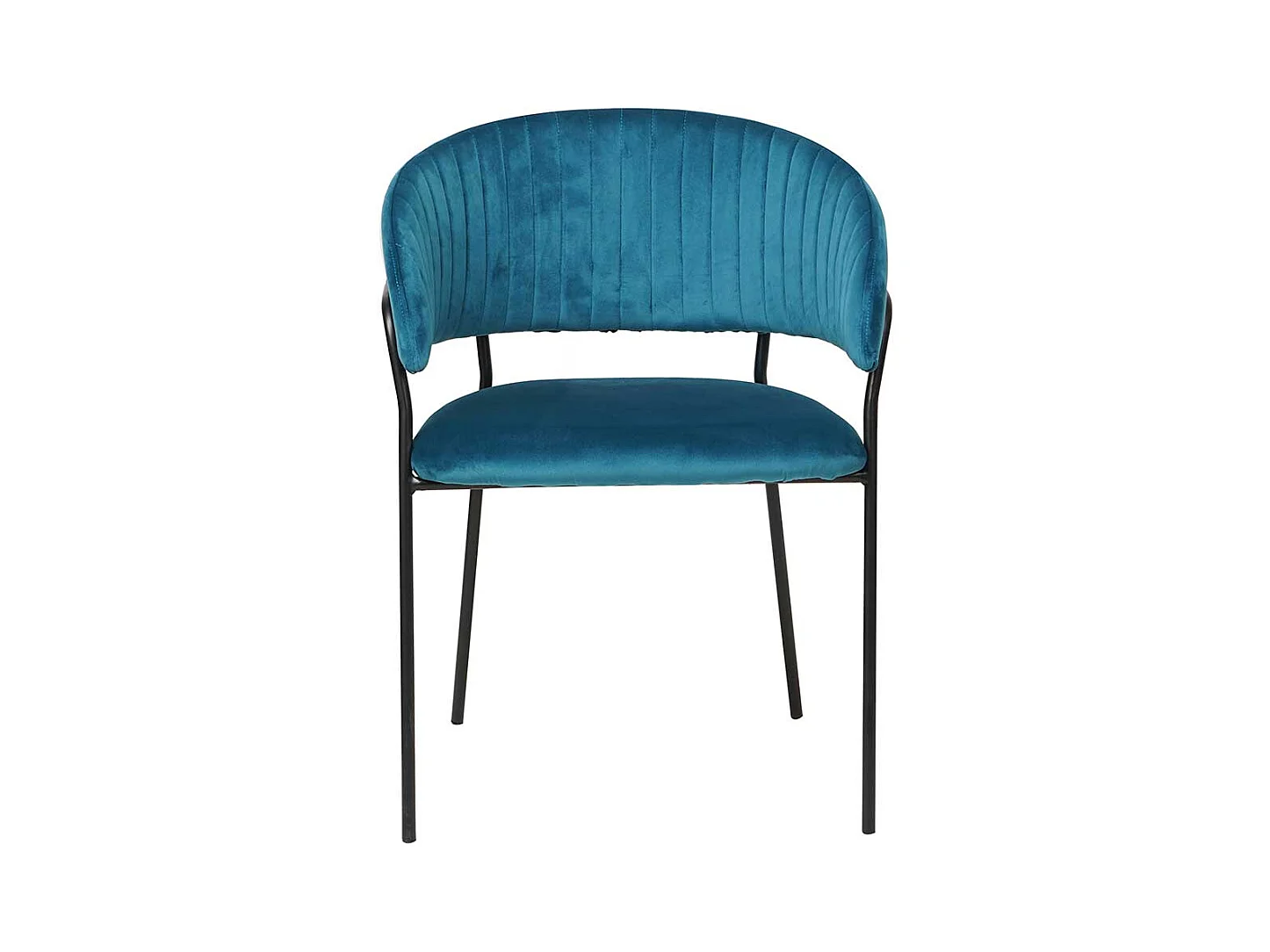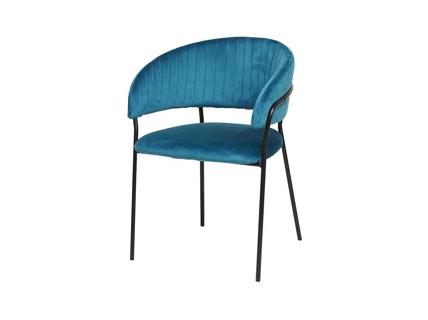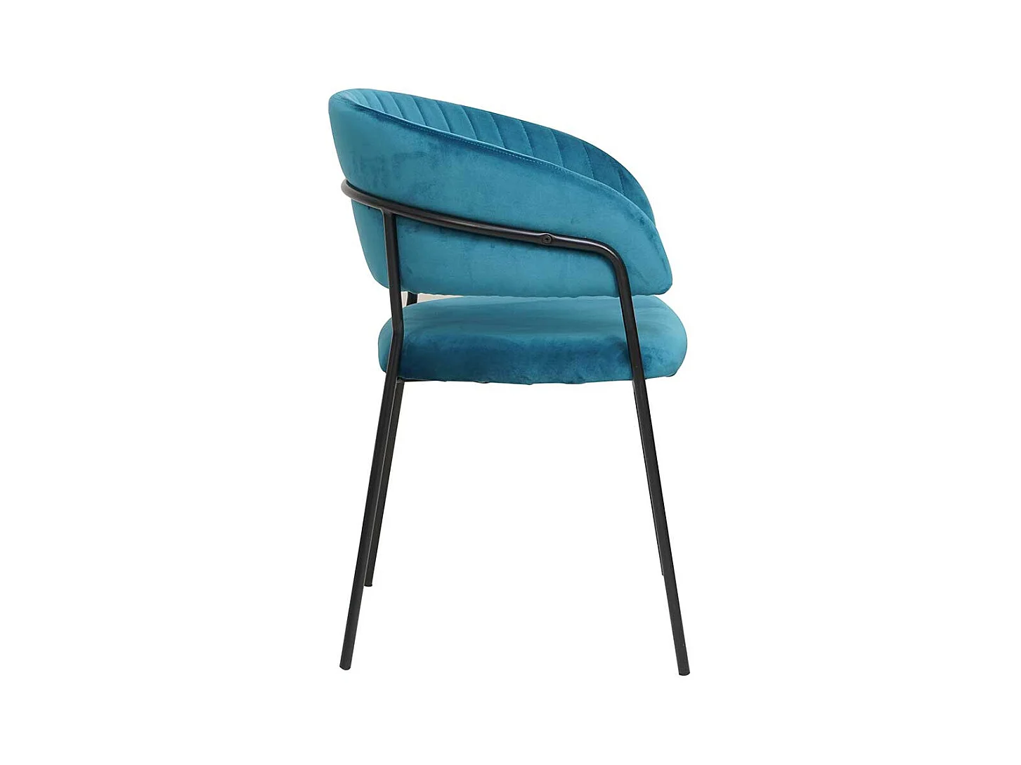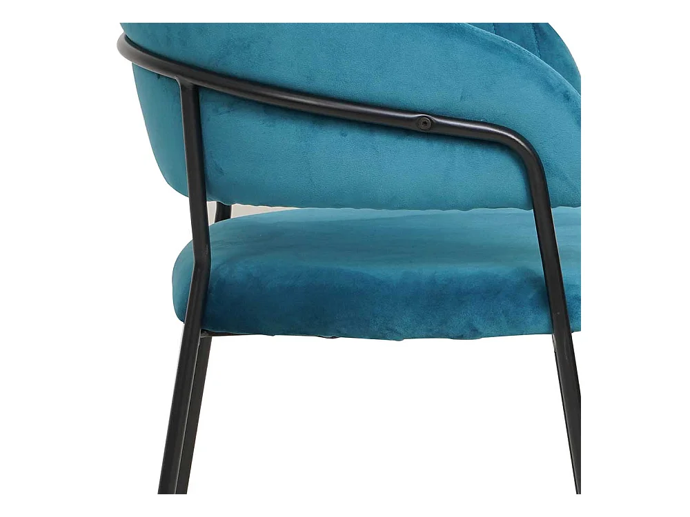 Samt Armlehnstuhl in Türkis und Schwarz Metallgestell