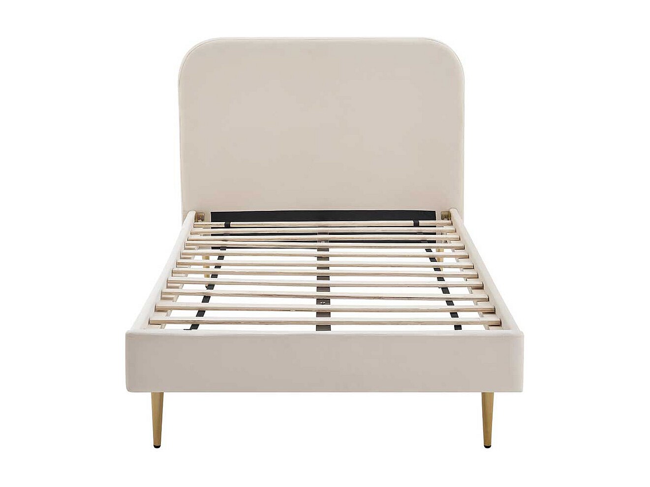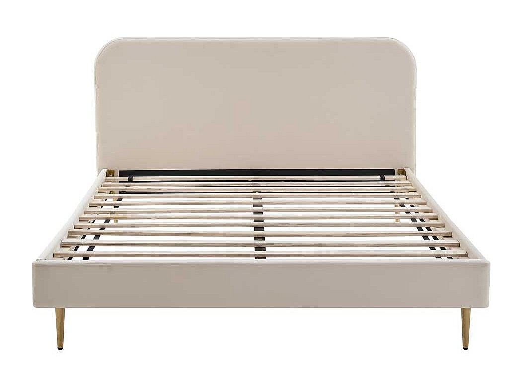 Samt Bett in Beige Vierfußgestell aus Metall Goldfarben