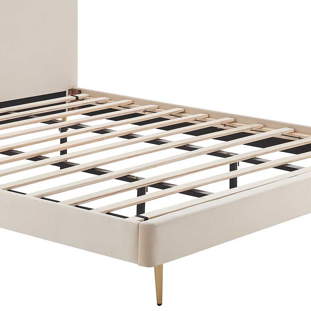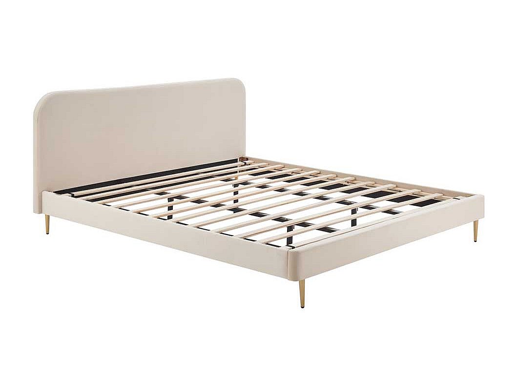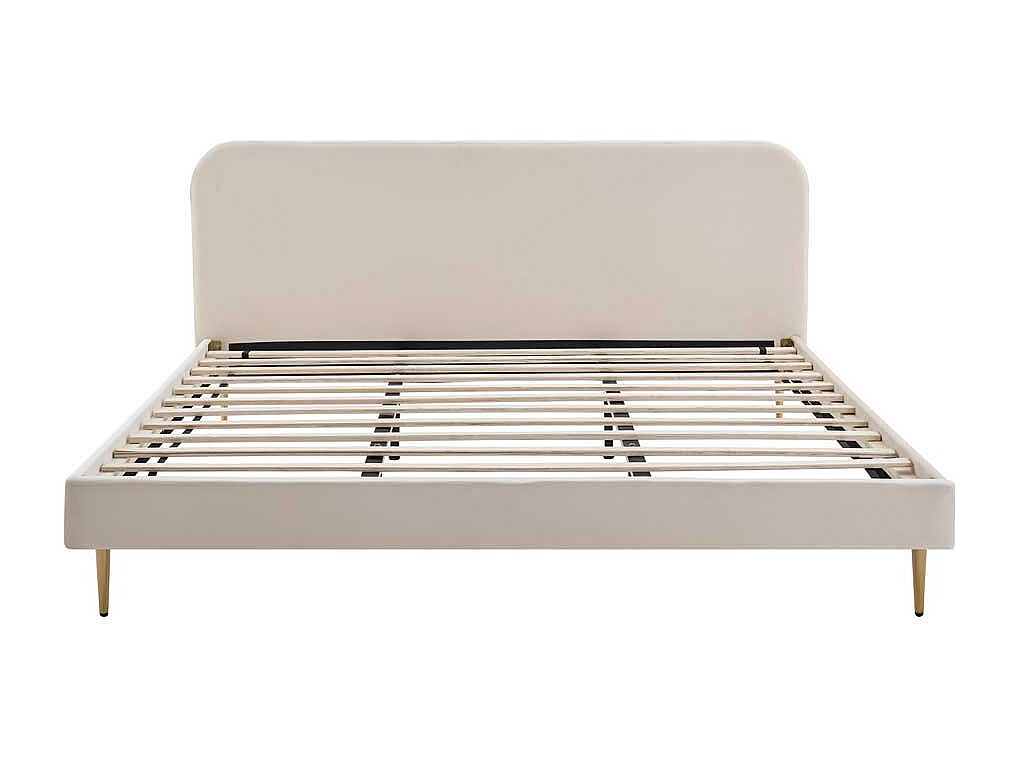 Samt Bett in Beige Vierfußgestell aus Metall Goldfarben