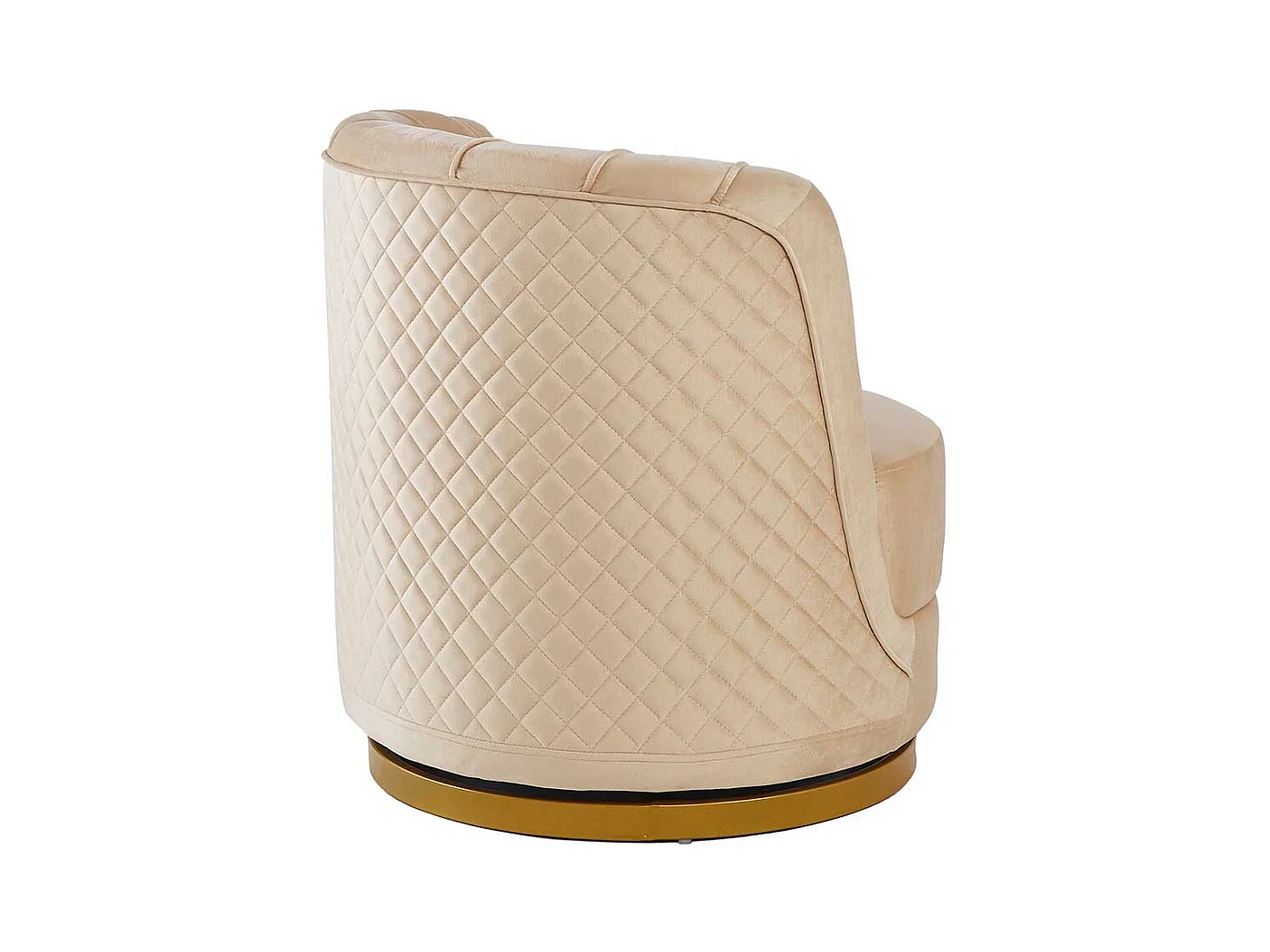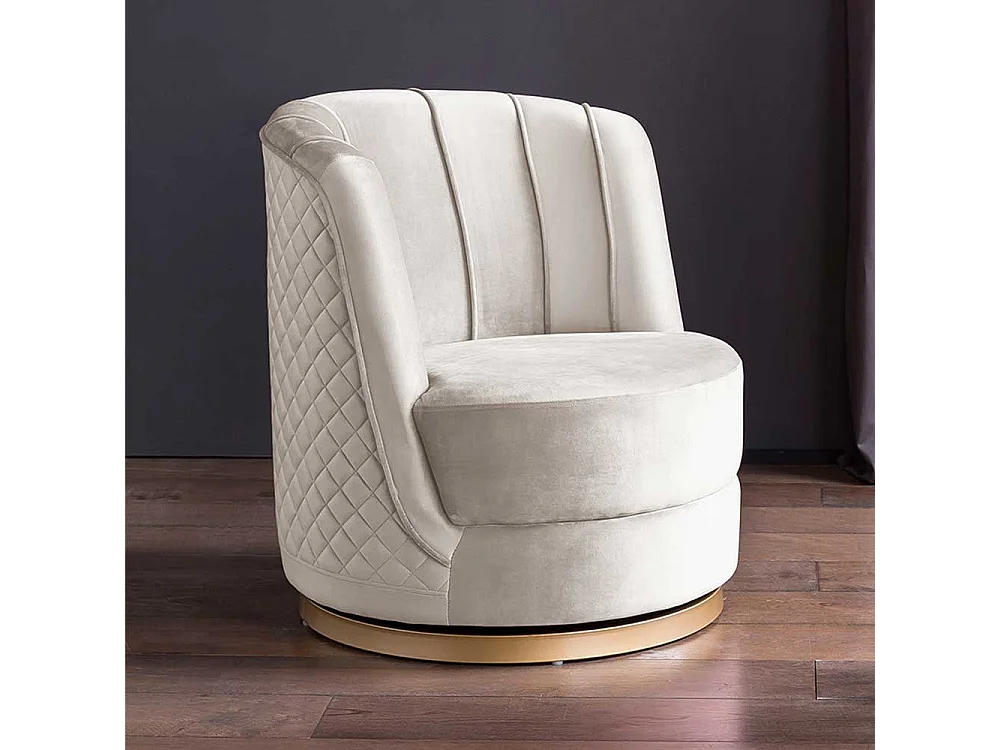 Samt Drehsessel Retro in Cremeweiß und Goldfarben 77 cm hoch