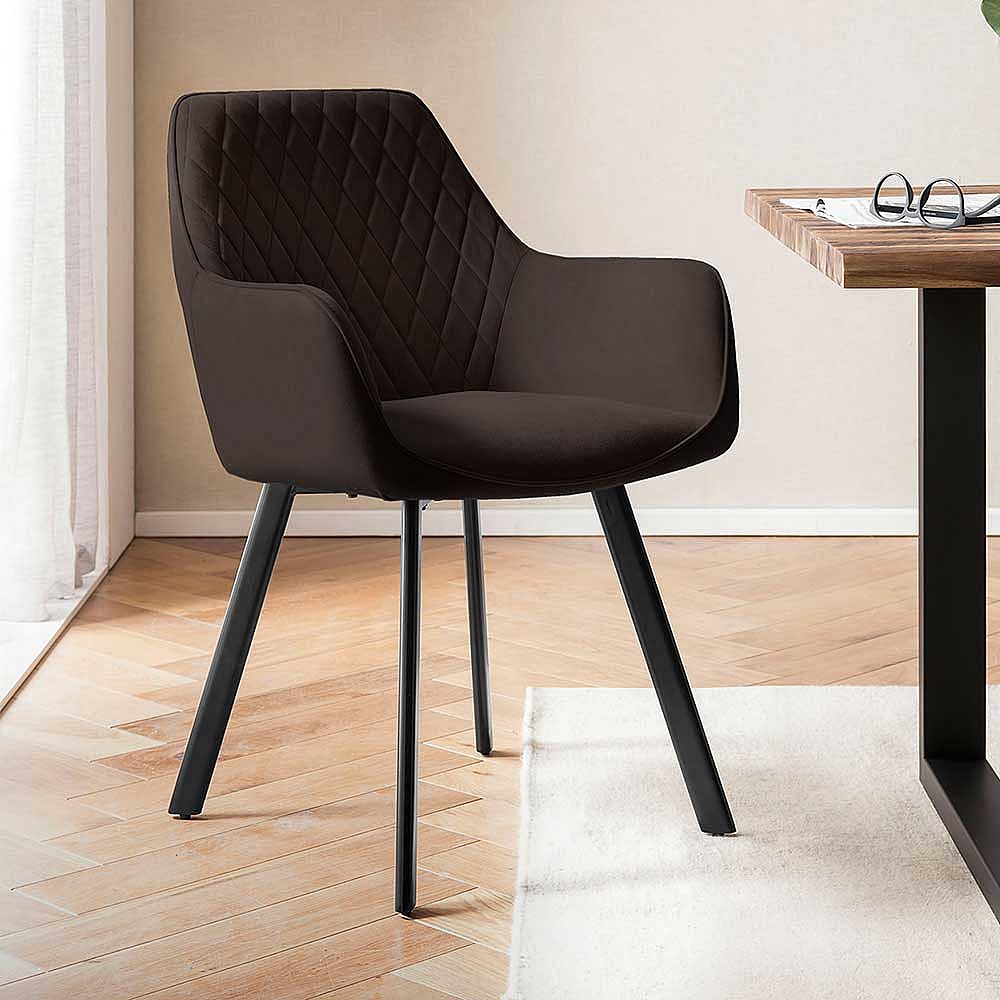 Samt Esszimmerstuhl Set in Braun und Schwarz 46 cm Sitzhöhe (2er Set)
