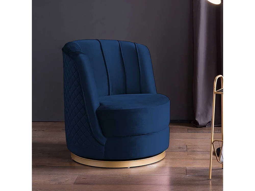 Samt Polstersessel drehbar in Dunkelblau Goldfarben