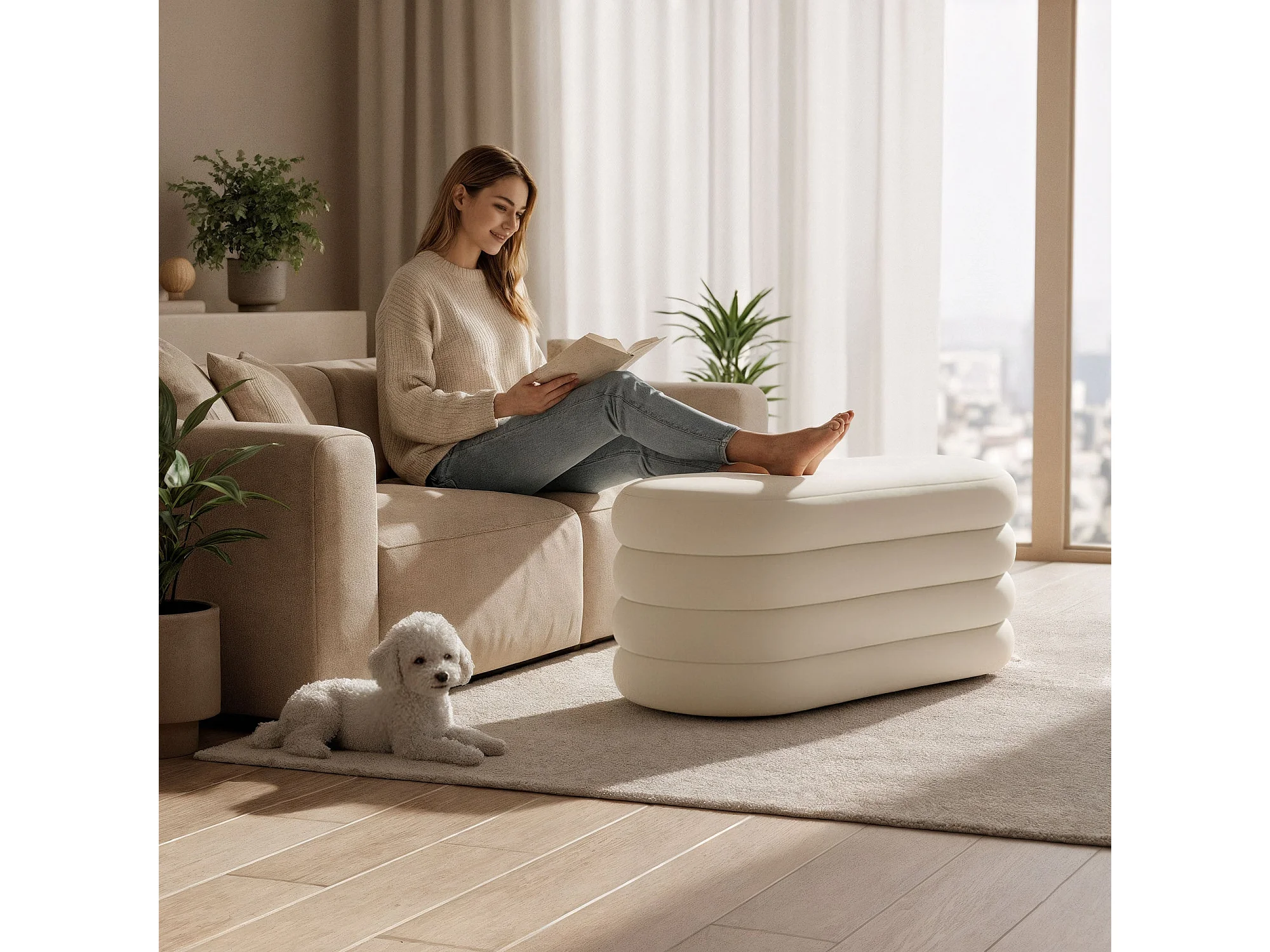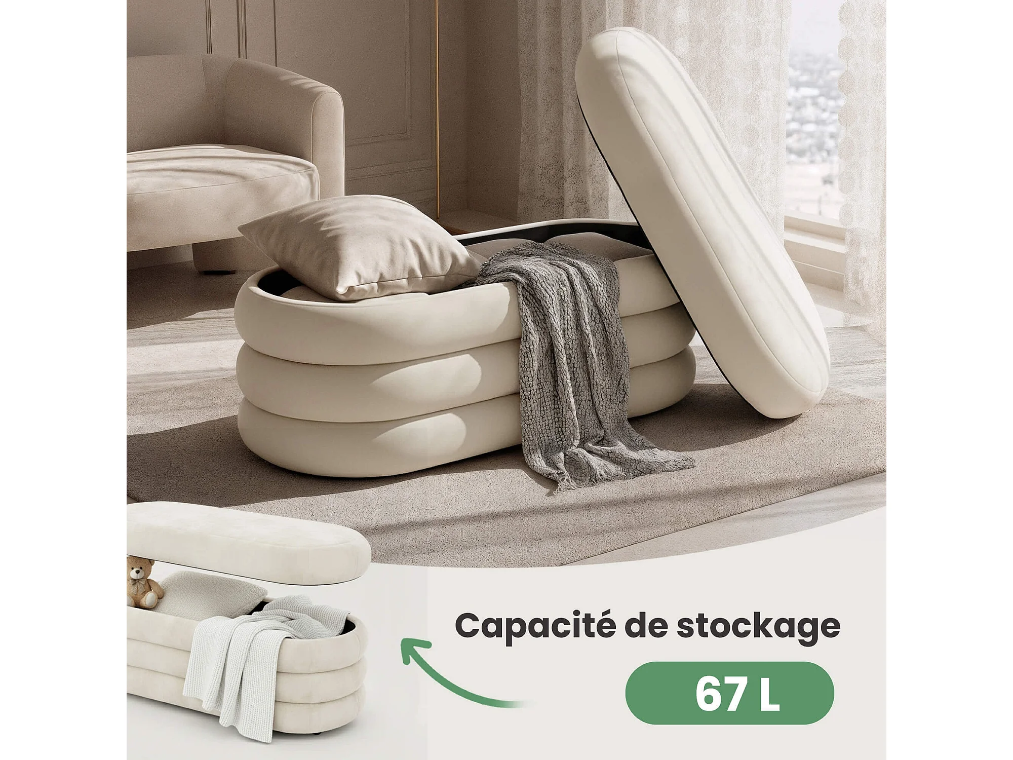 Samt-Sitzbank mit Stauraum 100 cm PUFFO Creme