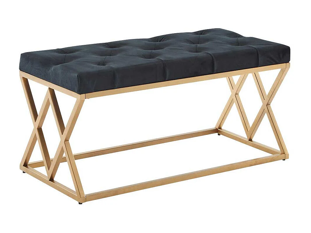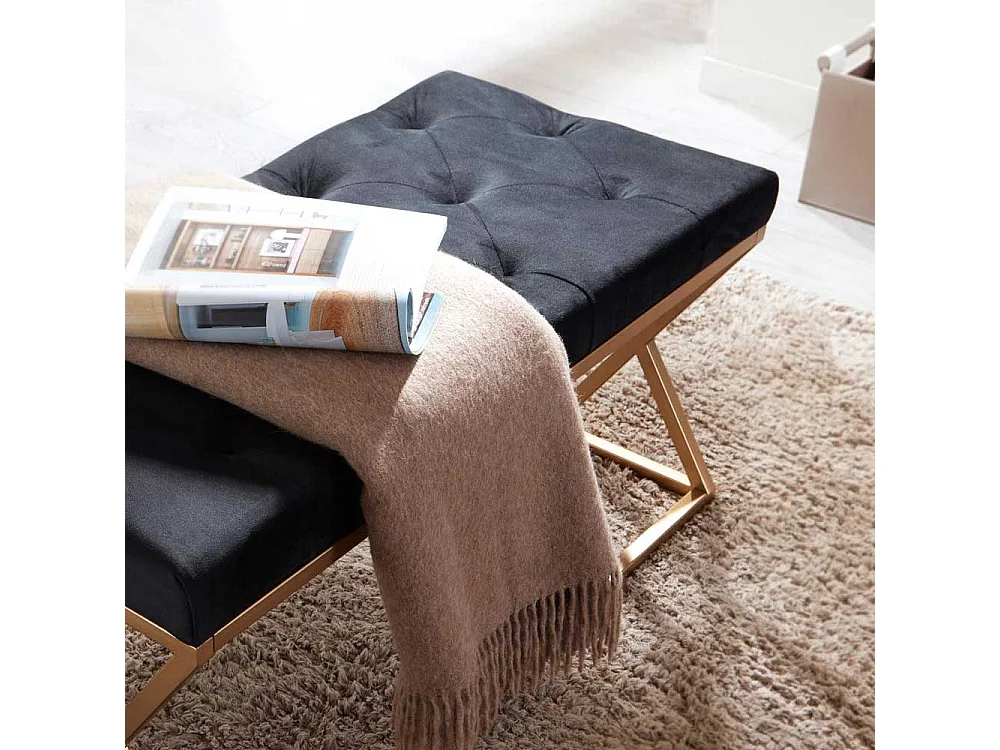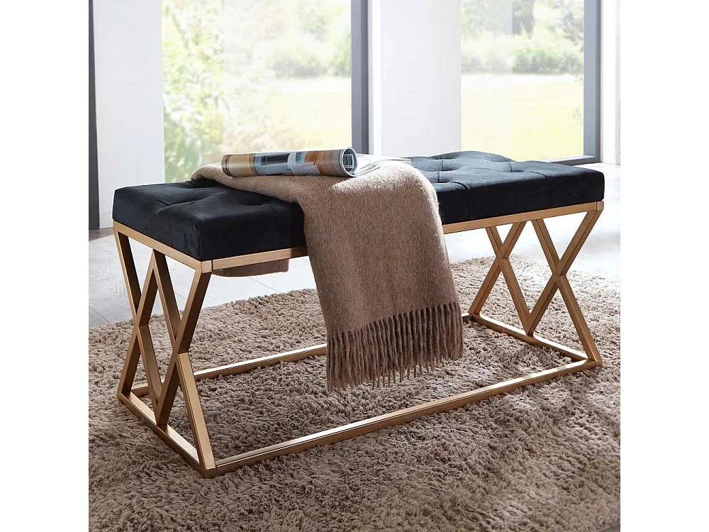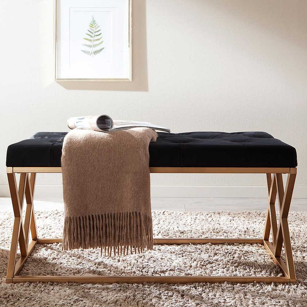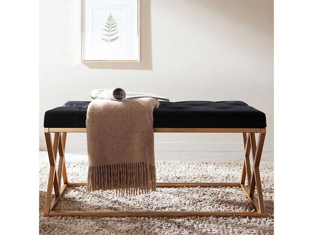 Samt und Metall Sitzbank im Retrostil Goldfarben und Schwarz