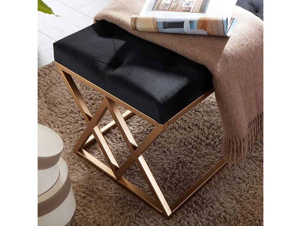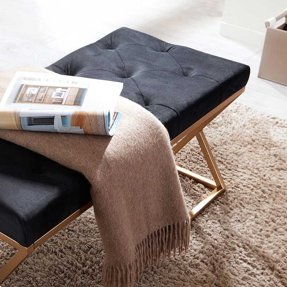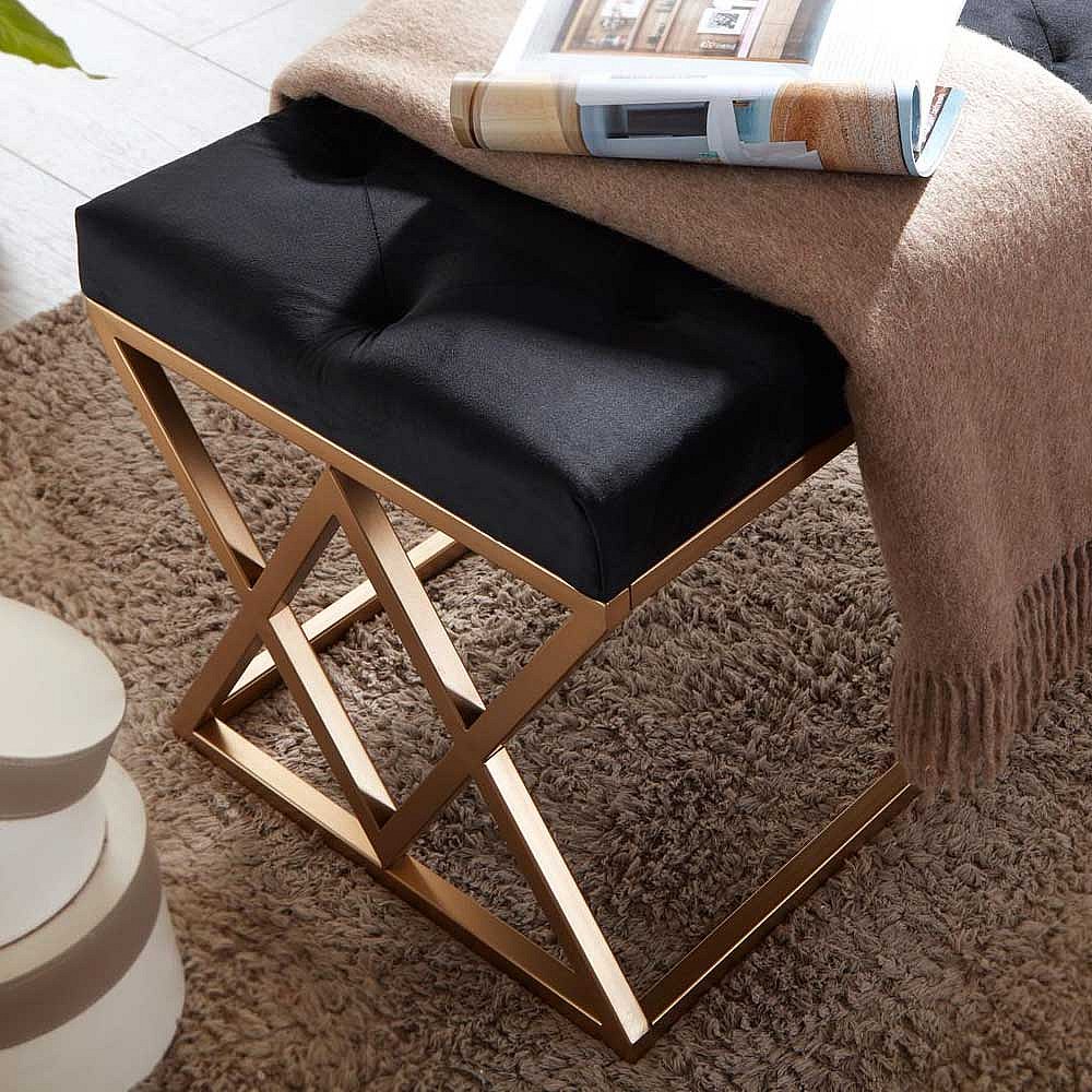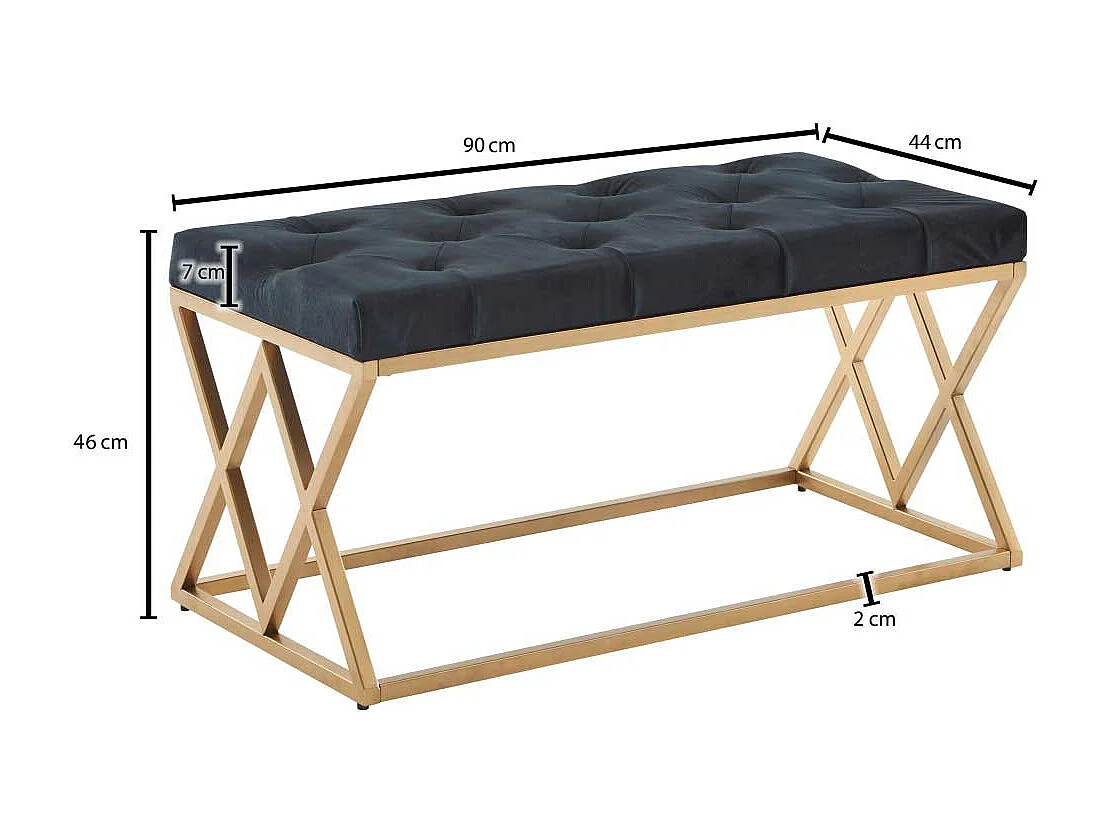 Samt und Metall Sitzbank im Retrostil Goldfarben und Schwarz