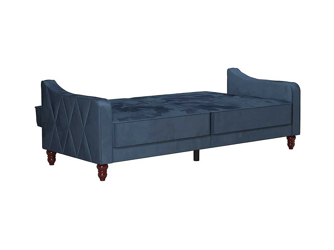 Samtbezug Schlafsofa blau im Retrostil Rücken Klappmechanik