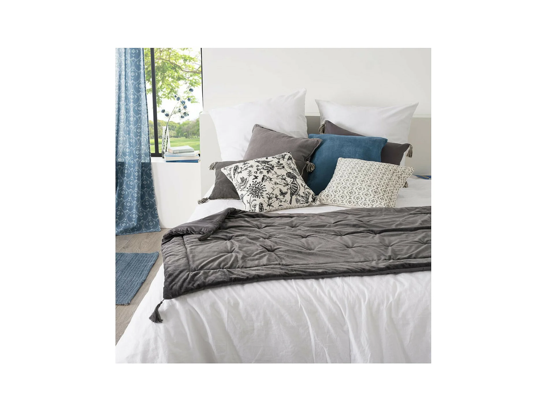 Samtdecke mit Pompons 80 x 180 cm