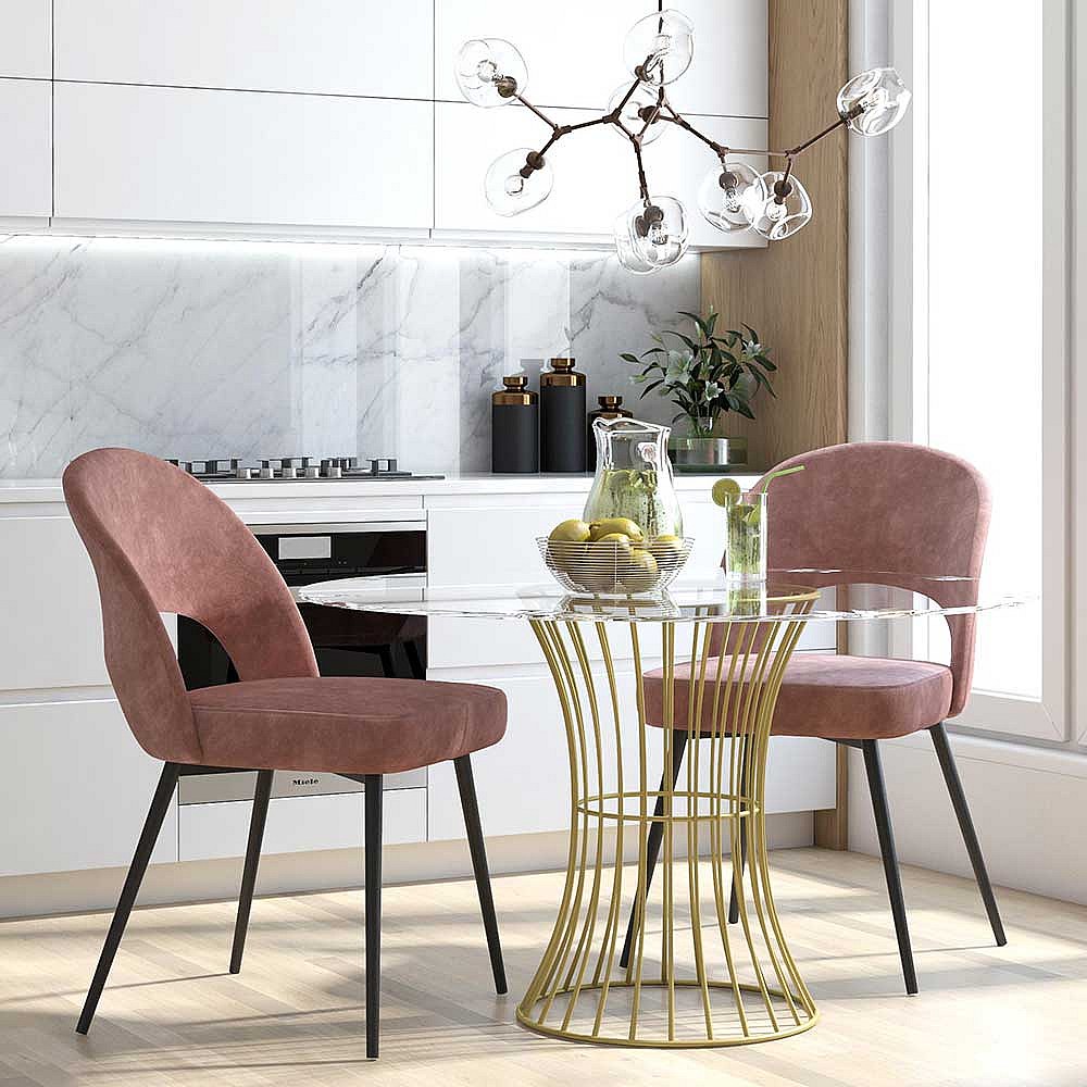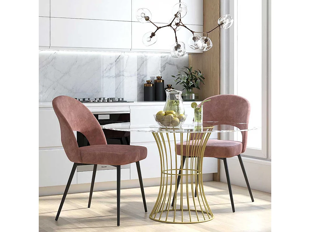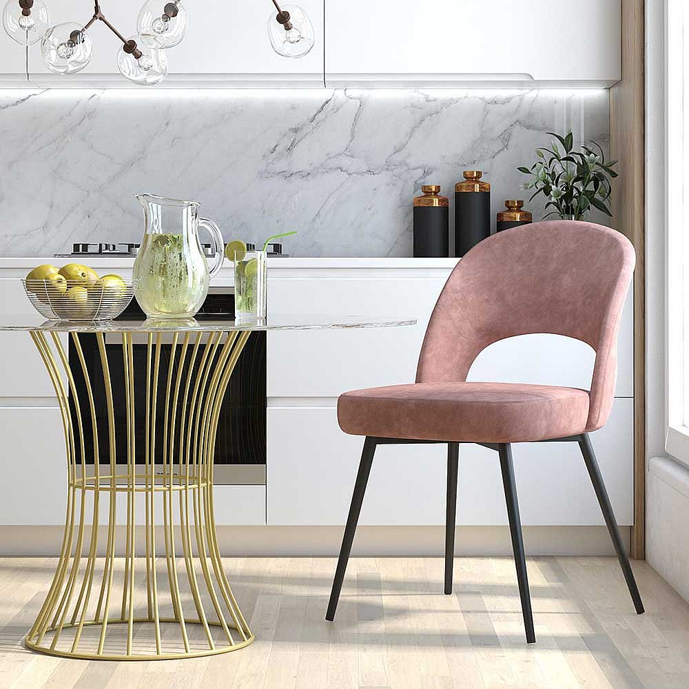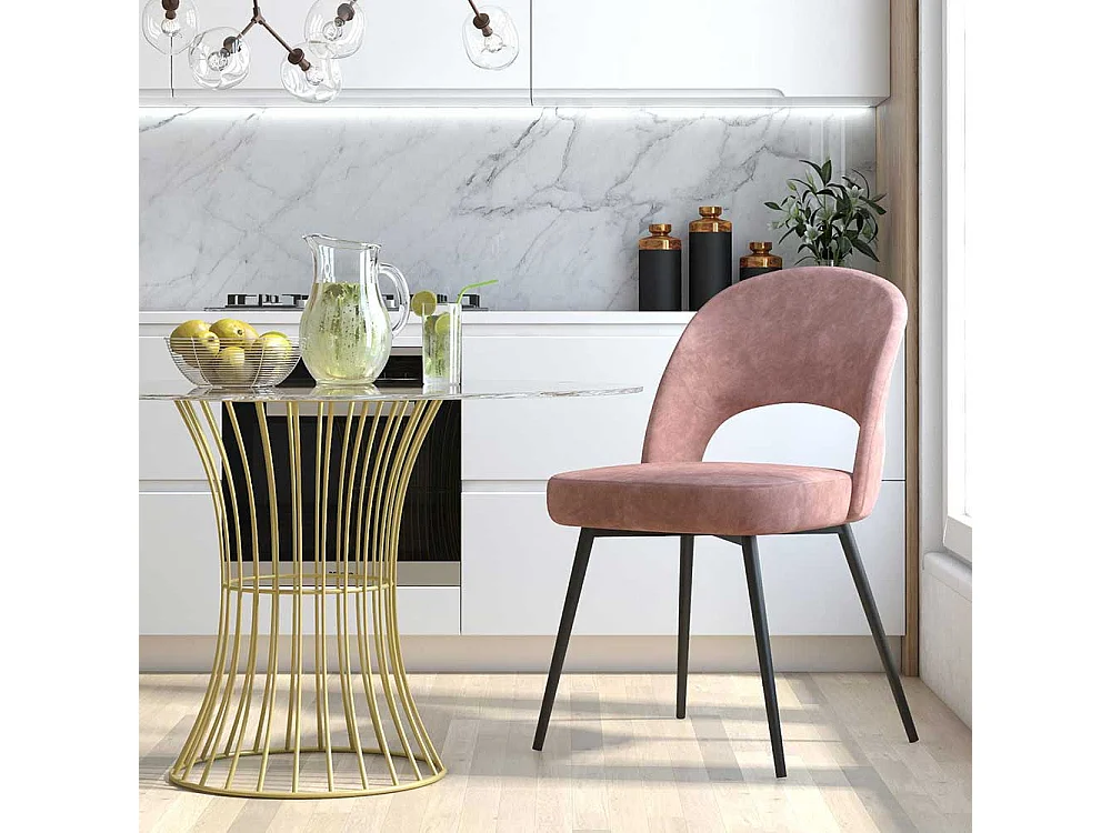 Samtvelours Stuhl Altrosa mit Gestell aus Metall Schwarz