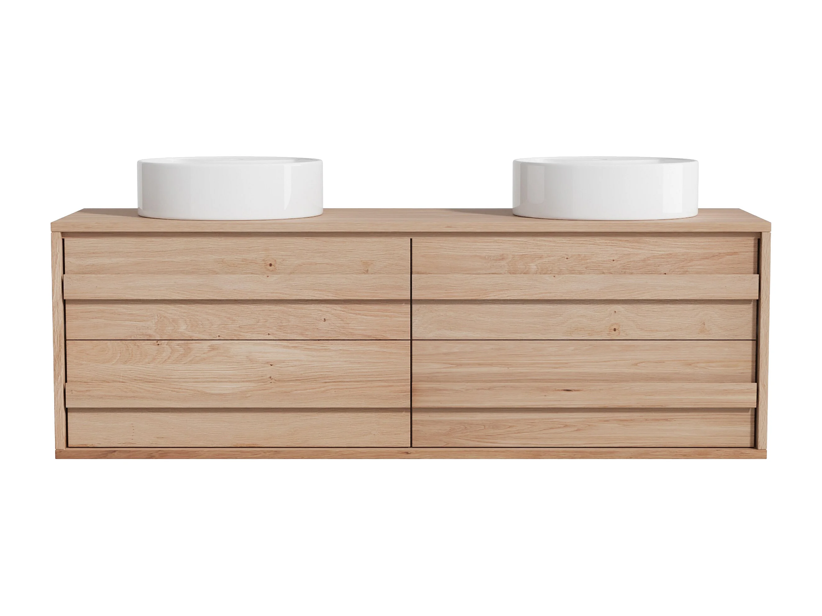 Hängender Unterschrank aus Massivholz Eiche mit rundem Aufsatzbecken - Hell Natur - 150 cm - SARLO
