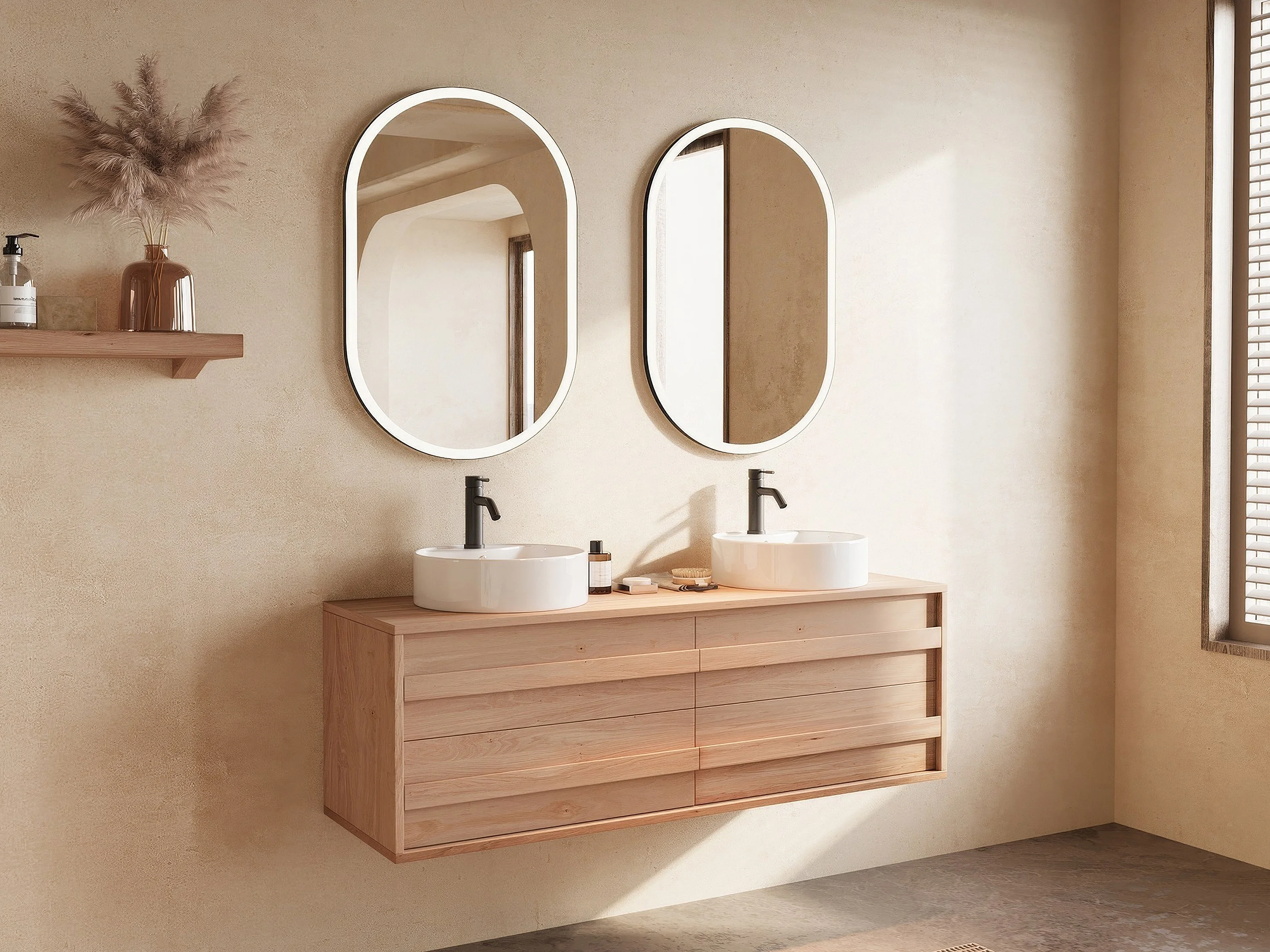 Hängender Waschbeckenunterschrank aus Massivholz Eiche - Hell Natur - 150 cm - SARLO