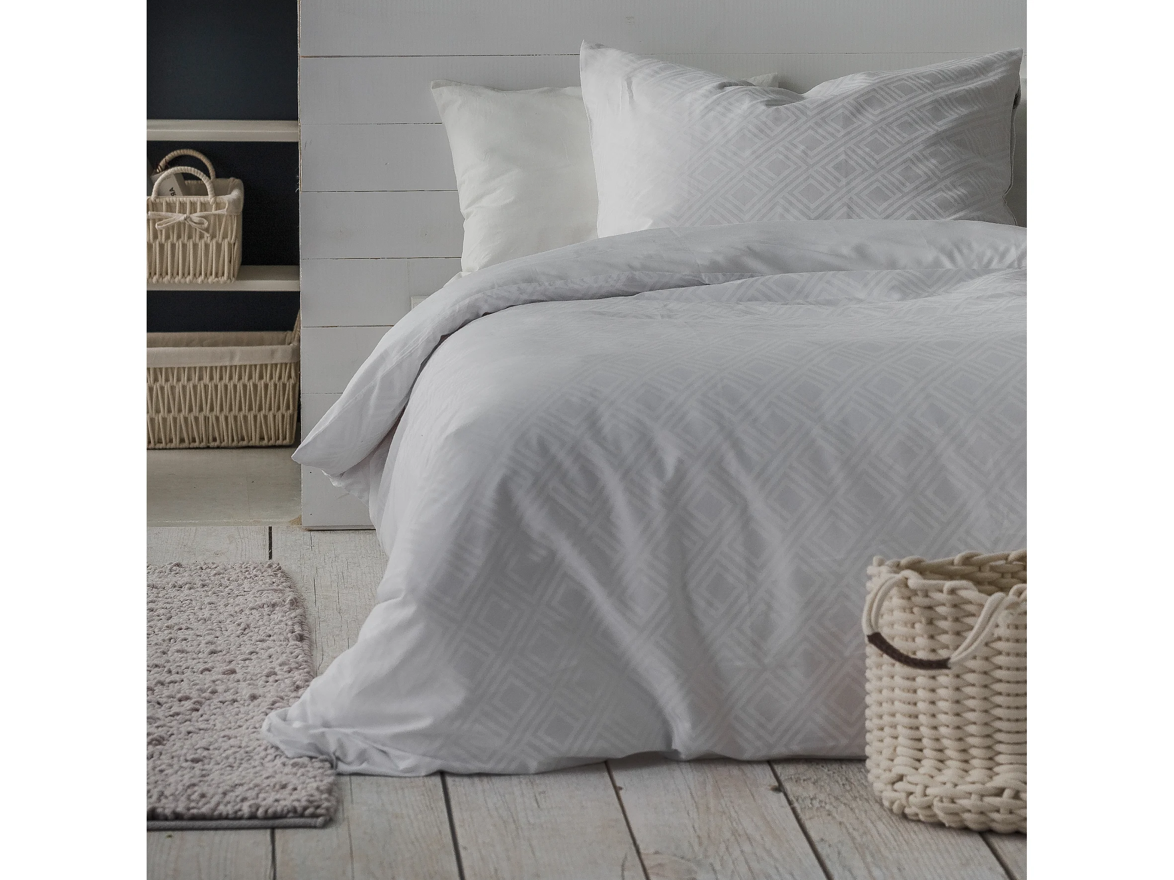 Satin-Baumwoll-Bettwäsche Grapho Mittelweiß 200x220