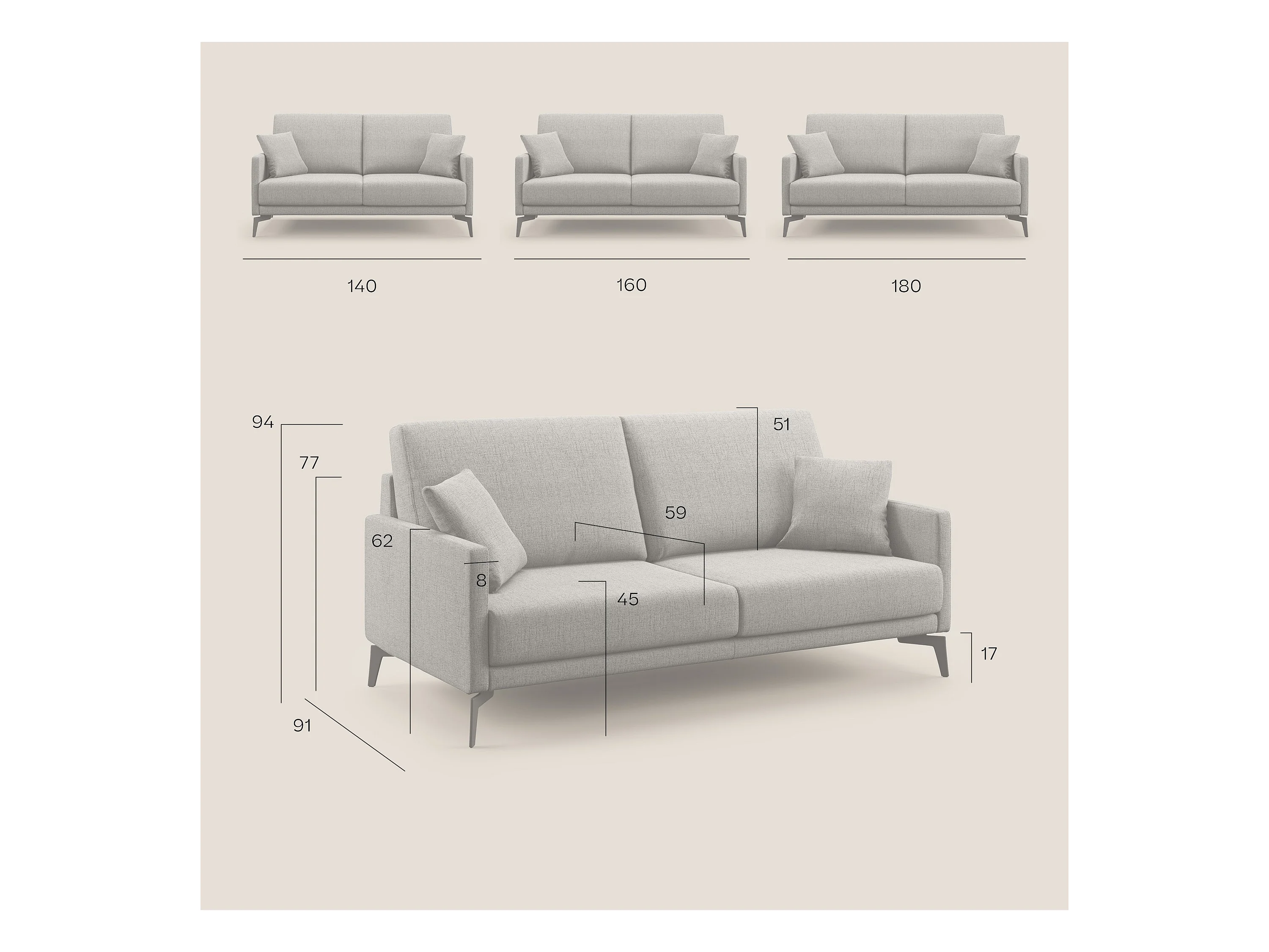 Saturno modernes Sofa aus weichem wasserfestem Stoff T03 160 cm hellblau