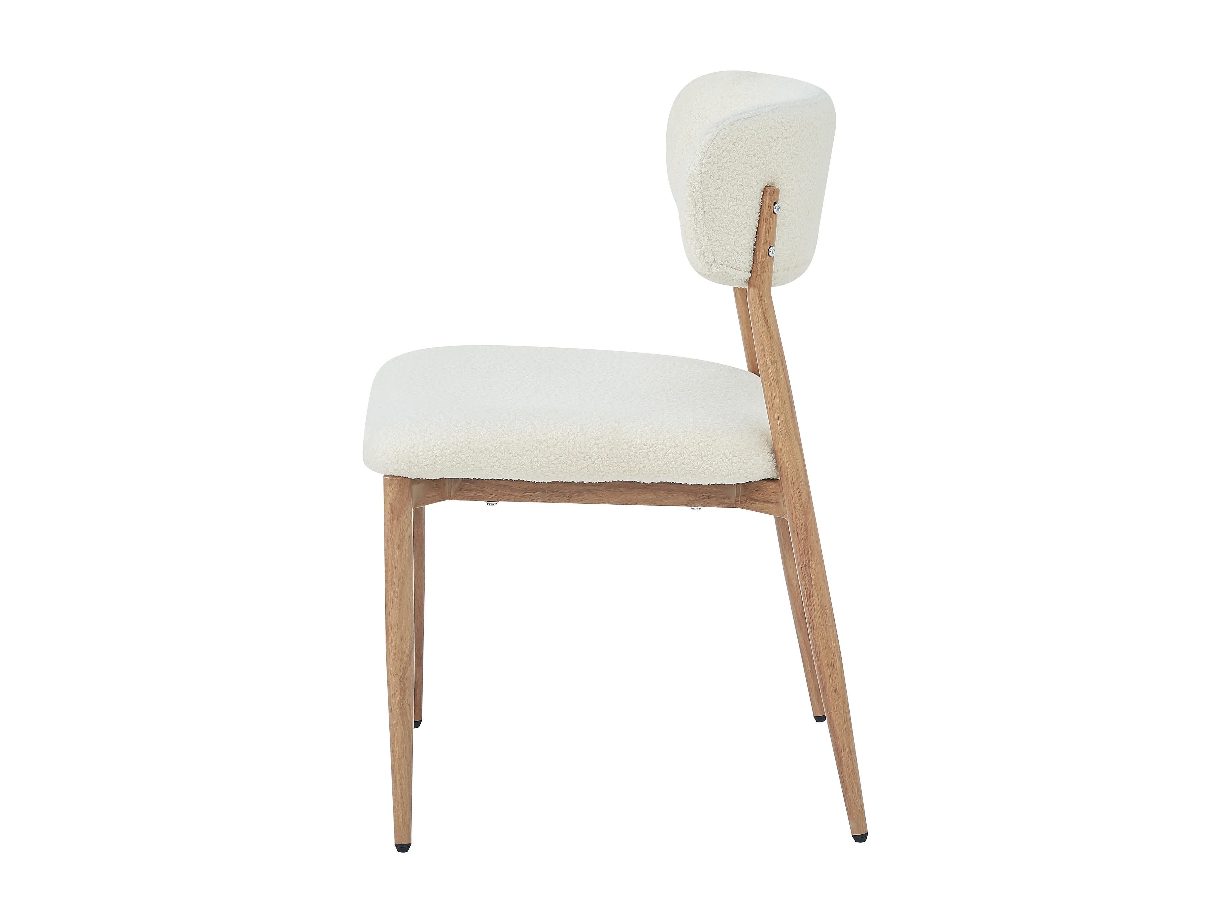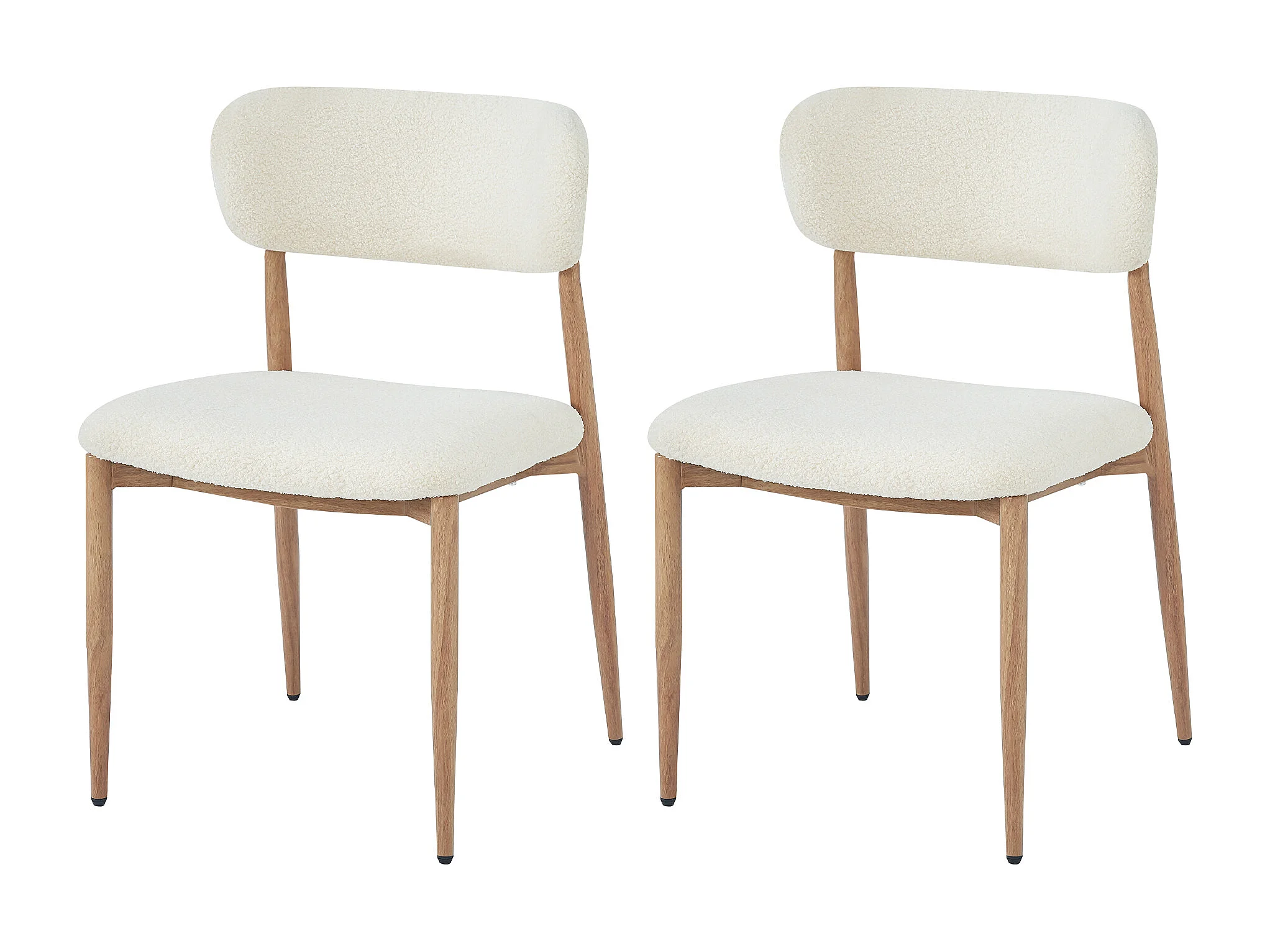 Satz mit 2 Metall-Stühlen - Holzoptik - Bouclé-Stoff beige - Weiches Sitzkissen - Natur
