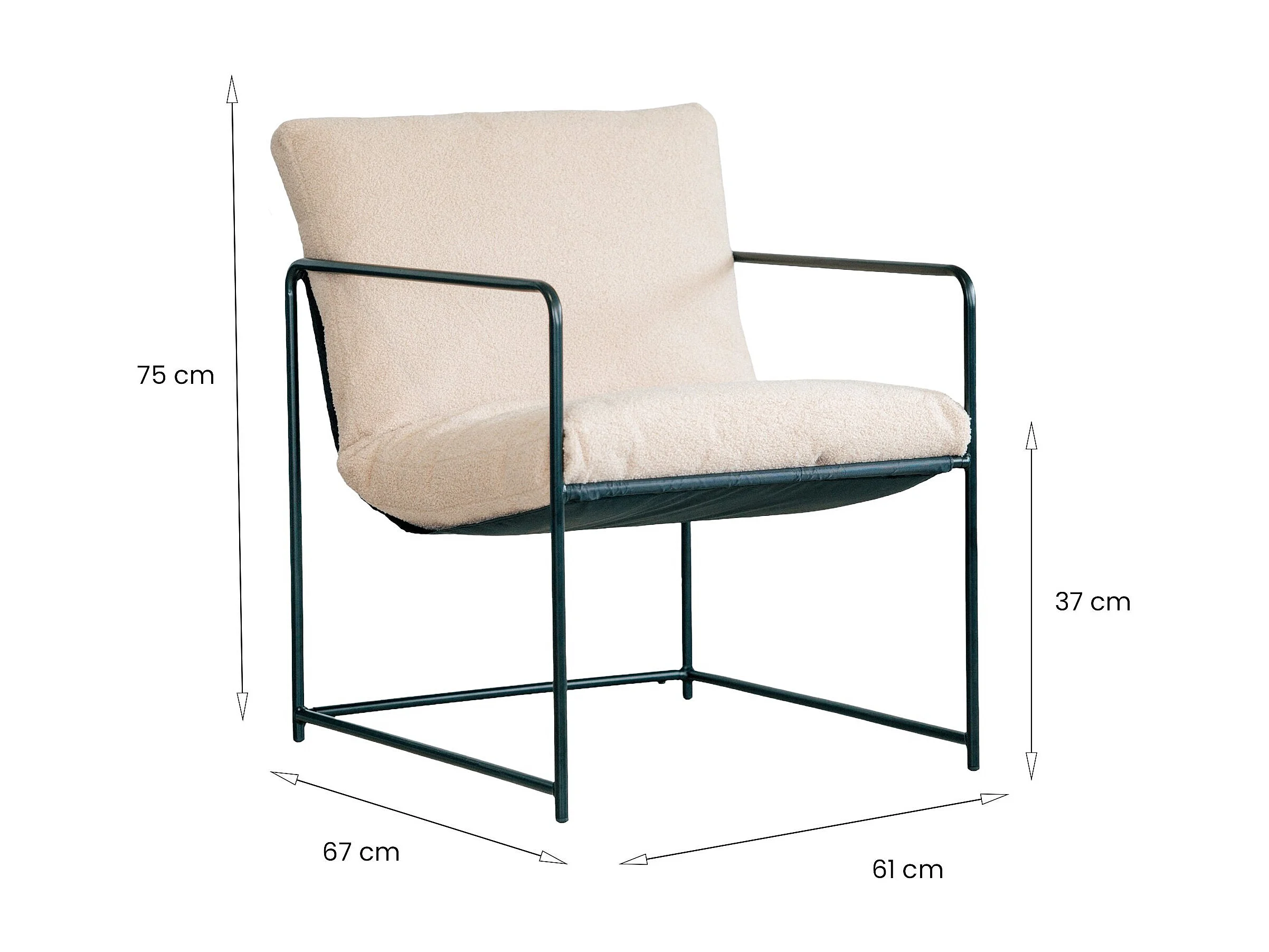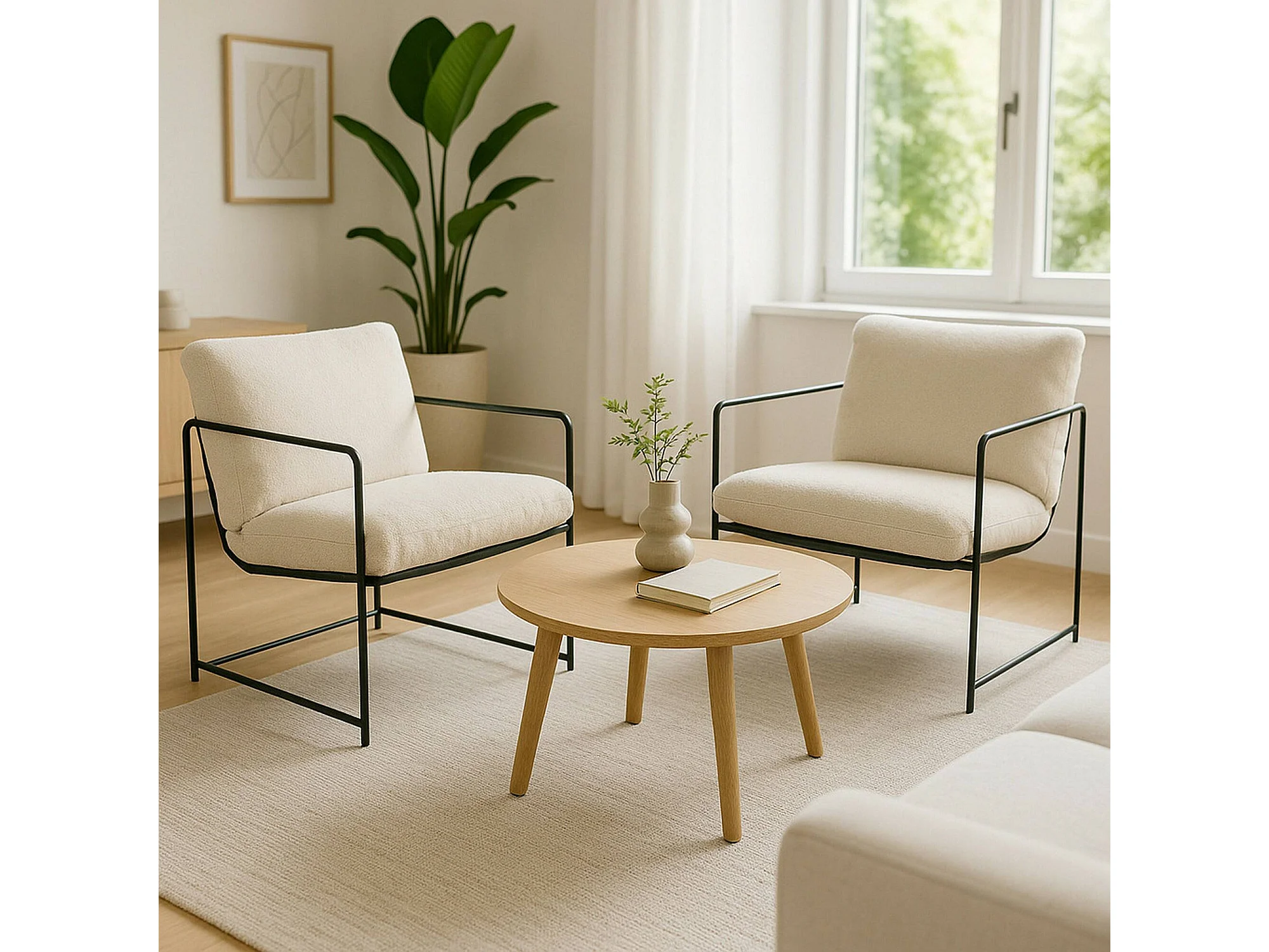 Satz mit 2 Sesseln Dabdelat, Sessel mit Bouclé-Stoff bezogen, gepolsterter Stuhl, Sitz mit Metallarmlehnen, 61x67h75 cm, Beige
